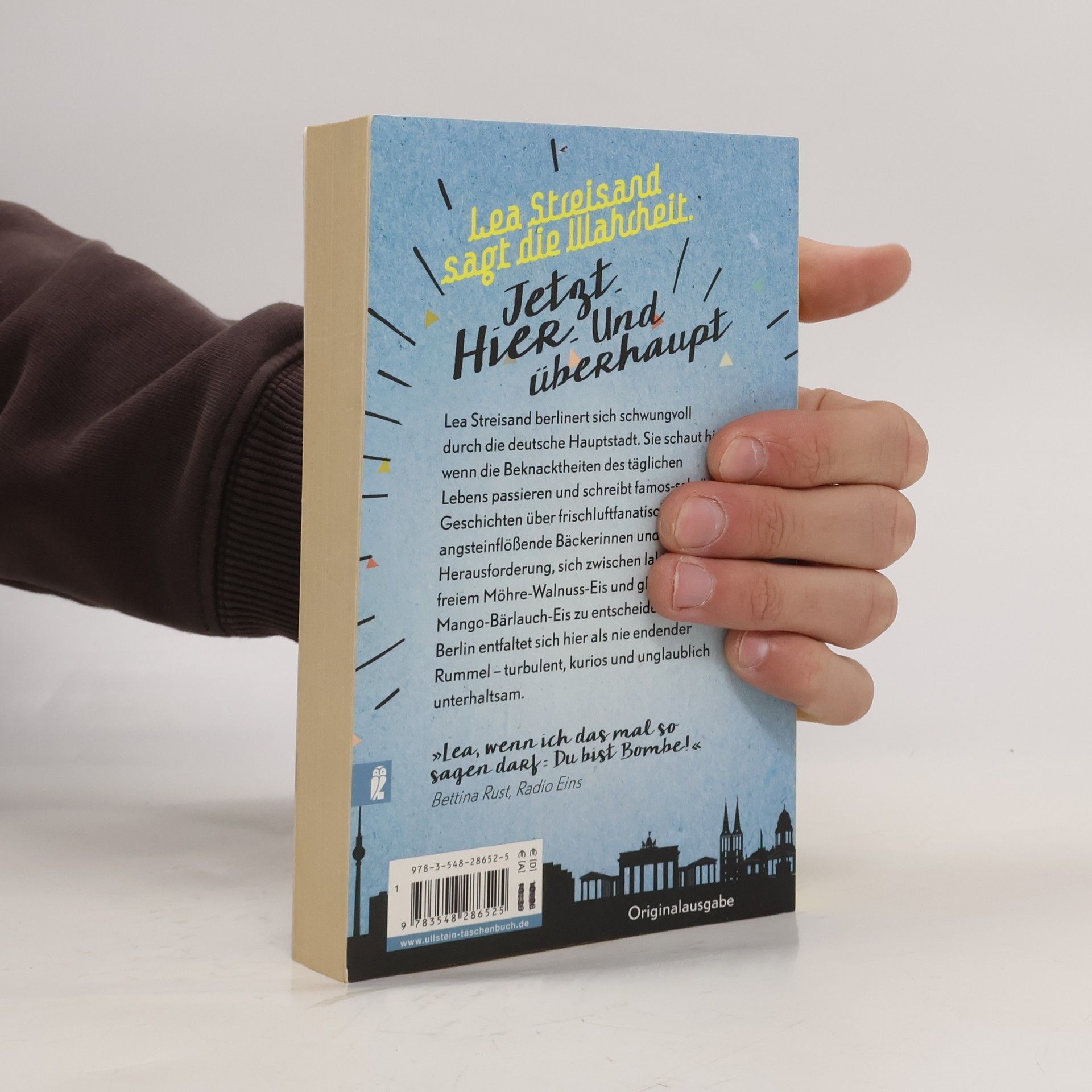 Lea Streisand sagt die Wahrheit. Jetzt. Hier. Und überhaupt. Lea Streisand ist unterwegs durch die große Stadt. Sie guckt hin, wenn die Beknacktheiten des täglichen Lebens passieren und schreibt Geschichten darüber, damit sie wahrer als die Wahrheit werden. Sie erzählt von Omilein aus dem Westen, von damals, als der Helmholtzplatz noch Drogenumschlagplatz war, und der Herausforderung, sich zwischen laktosefreiem Möhre-Wallnus-Eis oder glutenfreiem Mango-Bärlauch-Eis zu entscheiden. Berlin entfaltet sich hier als nie endender Rummel, ein Spiegelkabinett, in dem man in jeder noch so kuriosen Begegnung auch ein kleines Stückchen von sich selbst erkennt. »Lea, wenn ich das mal so sagen darf: Du bist Bombe!« Bettina Rust, Radio Eins