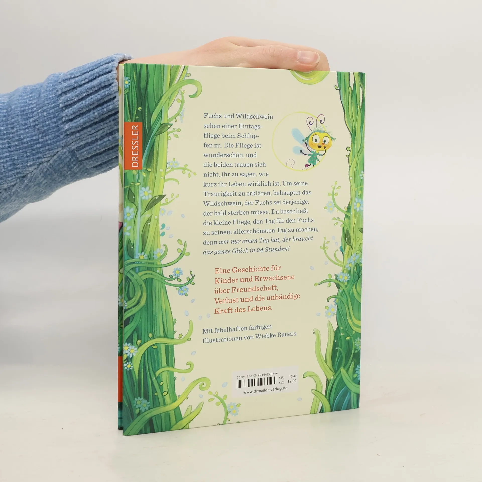 Du hast immer genug Zeit, um glücklich zu sein! Als Wildschwein und Fuchs unerwartet Zeugen werden, wie eine bezaubernde Eintagsfliege schlüpft, haben sie ein Problem: wer bringt ihr bloß bei, dass sie nur einen Tag zu leben hat? Kurzerhand behaupten sie, der Fuchs sei derjenige, der bald sterben müsse. Die hübsche Fliege hat gleich eine Idee und verkündet: Dann müsse eben das ganze Leben in einen Tag hinein, mitsamt dem großen Glück! Witzige und tiefgründige Fabel über den Sinn des Lebens und das kostbare Geschenk der Freundschaft, die sowohl Kinder ab 6 Jahren als auch Eltern begeistert. Geschrieben vom vielfach preisgekrönten Kinderbuch-Autor Martin Baltscheit. Das Buch wurde 2017 ebenfalls verfilmt, mit Karoline Schuch, Lars Rudolph, Aljoscha Stadelmann und Anke Engelke in den Hauptrollen. Gelistet bei Antolin.