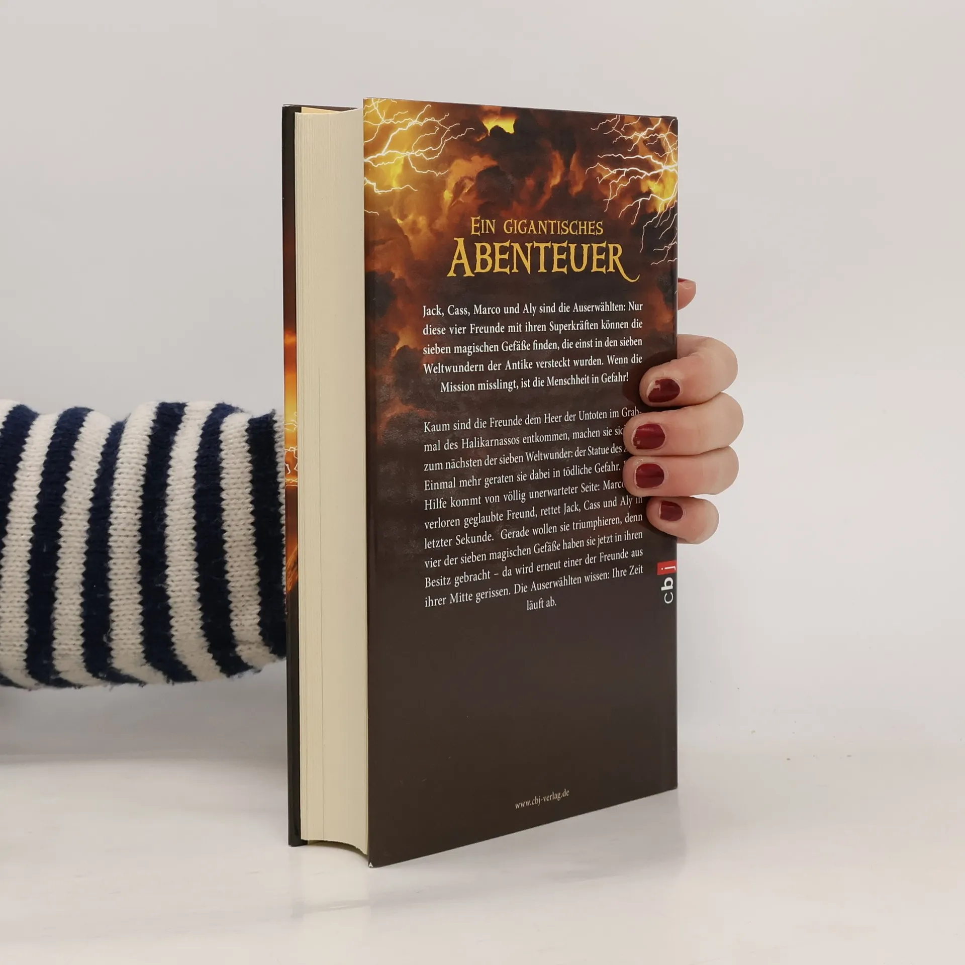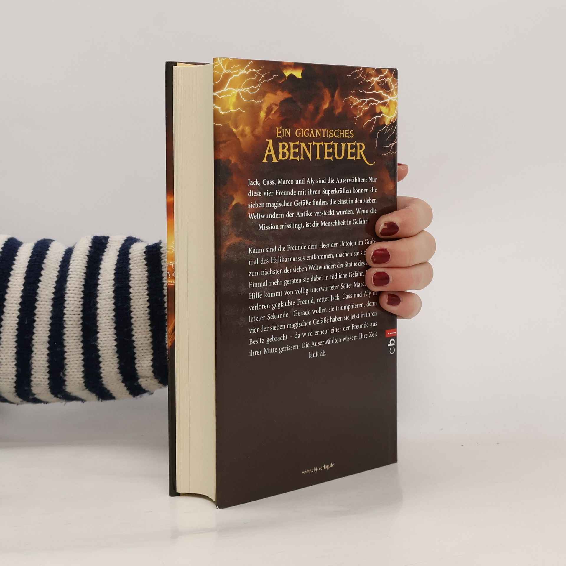 Sieben Weltwunder, vier Freunde – ein atemberaubendes Abenteuer Jack, Cass, Marco und Aly sind die Auserwählten: Nur diese vier Freunde mit ihren Superkräften können die sieben magischen Gefäße finden, die einst in den sieben Weltwundern der Antike versteckt wurden. Wenn die Mission misslingt, ist die Menschheit in Gefahr! Kaum sind die Freunde dem Heer der Untoten im Grabmal des Halikarnassos entkommen, machen sie sich auf zum nächsten der sieben Weltwunder: der Statue des Zeus. Einmal mehr geraten sie dabei in tödliche Gefahr. Doch Hilfe kommt von völlig unerwarter Seite: Marco, der verloren geglaubte Freund, rettet Jack, Cass und Aly in letzter Sekunde. Gerade wollen sie triumphieren, denn vier der sieben magischen Gefäße haben sie jetzt in ihren Besitz gebracht - da wird erneut einer der Freunde aus ihrer Mitte gerissen. Die Auserwählten wissen: Ihre Zeit läuft ab.