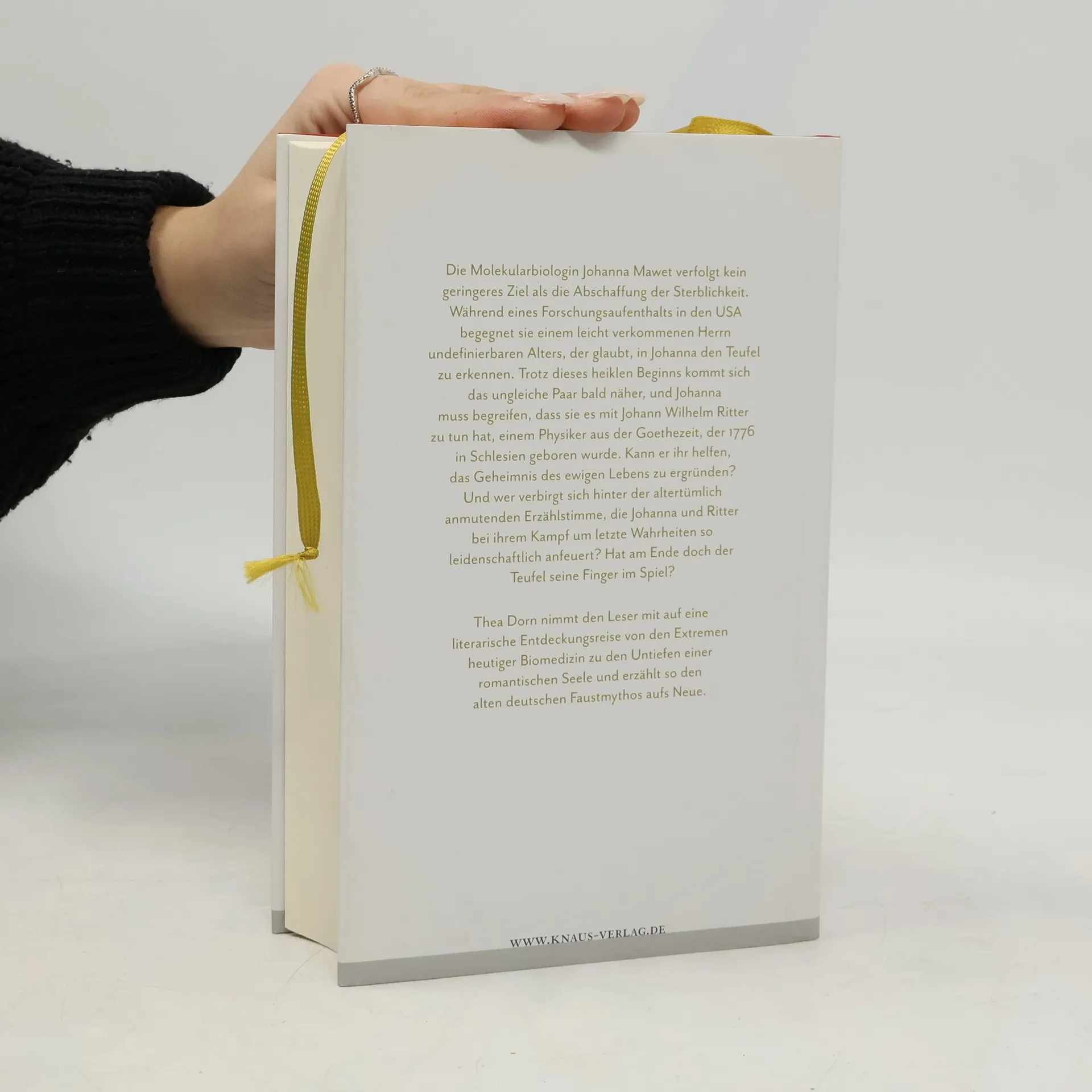 Ein Roman über die Sehnsucht nach Unsterblichkeit. Johanna Mawet ist Molekularbiologin und forscht an Zebrafischen zur Unsterblichkeit von Zellen. Während eines Forschungsaufenthalts in den USA gabelt sie einen merkwürdigen, alterslosen Herrn auf. Je näher sie ihn kennenlernt, desto abstrusere Erfahrungen macht sie mit ihm. Schließlich gibt er sein Geheimnis preis. Er sei der Physiker Johann Wilhelm Ritter, geboren 1776. Starker Tobak für eine Naturwissenschaftlerin von heute. Um seiner vermeintlichen Unsterblichkeit auf die Spur zu kommen, lässt sie seine DNA sequenzieren. Als Johannas Kollegen misstrauisch werden, bleibt dem sonderbaren Paar nur eines: die Flucht, dorthin, wo das Streben nach wissenschaftlicher Erkenntnis und schwarze Romantik sich schon immer gerne ein Stelldichein geben - nach Deutschland