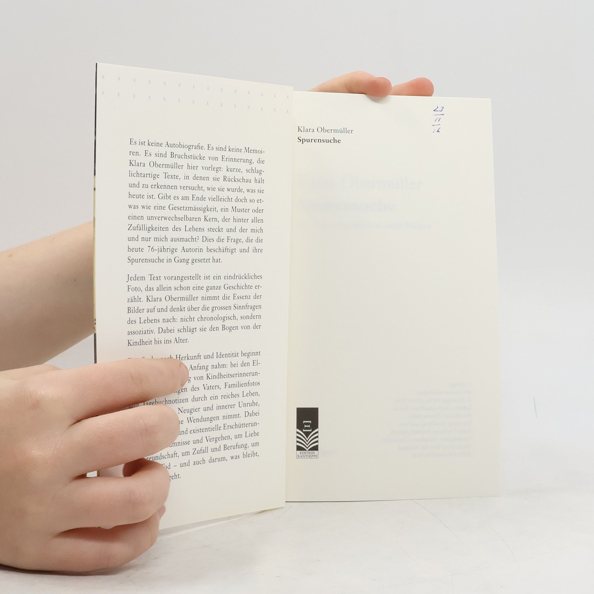 Es ist keine Autobiografie oder Memoiren, sondern eine Sammlung von Erinnerungsfragmenten, die Klara Obermüller präsentiert. In kurzen, prägnanten Texten reflektiert sie über ihr Leben und fragt sich, ob es ein zugrunde liegendes Muster gibt, das sie ausmacht. Diese Überlegungen treiben die 75-jährige Autorin an und bilden den Kern ihrer Spurensuche. Jeder Text wird von einem eindrucksvollen Foto begleitet, das eine eigene Geschichte erzählt. Obermüller ergründet die großen Fragen des Lebens assoziativ, nicht chronologisch, und spannt einen Bogen von der Kindheit bis ins Alter. Ihre Suche nach Herkunft und Identität beginnt bei ihren Eltern und führt durch Kindheitserinnerungen, Aufzeichnungen des Vaters, Familienfotos und Tagebuchnotizen. Ihr reiches Leben, geprägt von Neugier und innerer Unruhe, nimmt immer wieder neue Wendungen. Themen wie Glück, existentielle Erschütterungen, Versäumnisse, Liebe, Freundschaft, Zufall, Berufung, Alter und Tod stehen im Mittelpunkt. Diese zwölf berührenden Miniaturen regen dazu an, auch die eigene Vergangenheit zu reflektieren und den Kern des eigenen Wesens zu suchen.