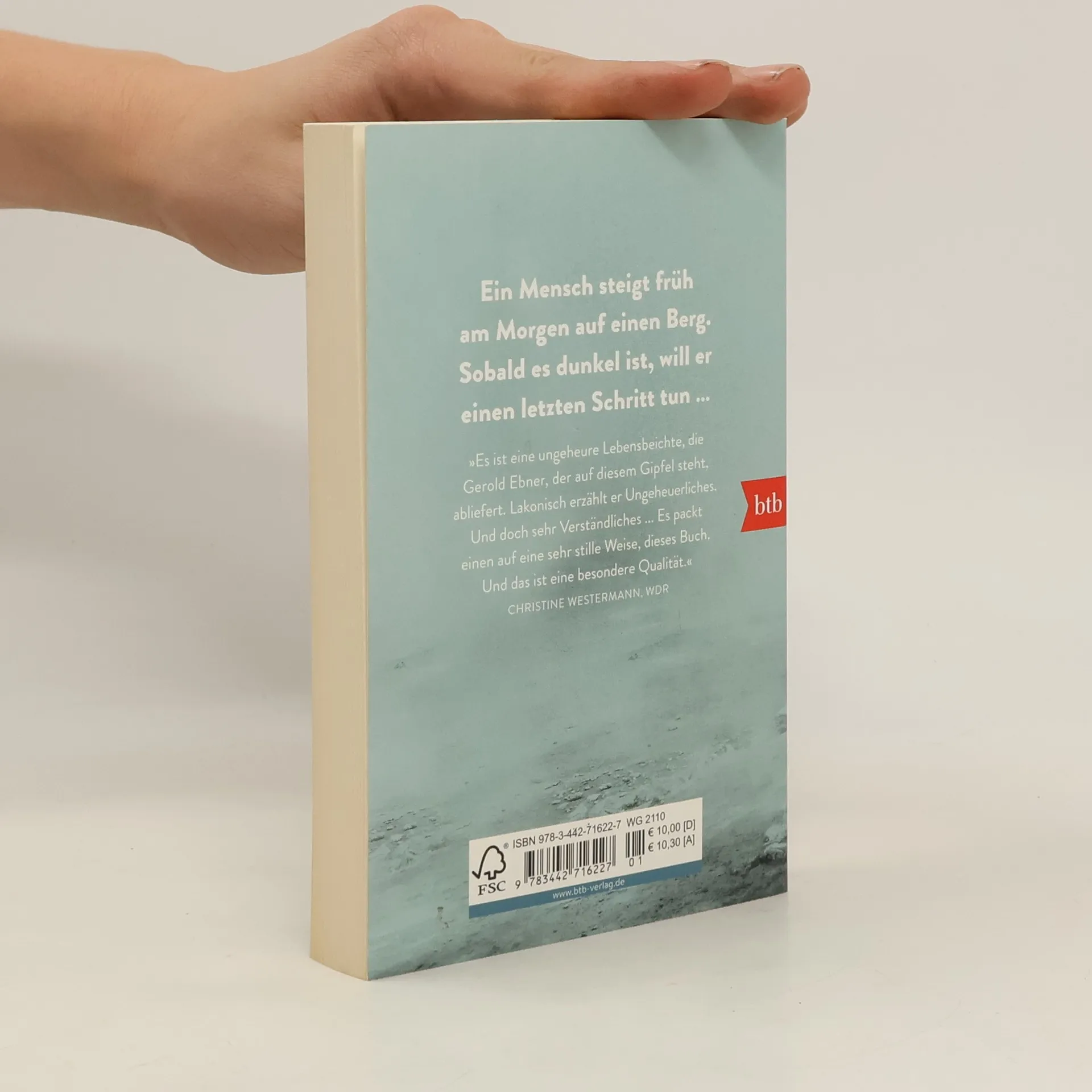Ein Mensch steigt früh am Morgen auf einen Berg. Sobald es dunkel ist, will er einen letzten Schritt tun. Schon immer lagen der Tod und das Glück für Gerold Ebner nah beieinander. Als Kind hat er seinen ersten Toten gesehen. Später hat er zwei Menschen eigenhändig den Tod gebracht: Er erlöste seine Mutter vom terrorisierenden Großvater und seinen besten Freund von dessen Leiden. Doch ist er damit zum Mörder geworden? Noch einmal entscheidet sich Gerold gegen das Gesetz und findet so sein eigenes Glück, das ihm der Tod wieder nimmt ... Fesselnd bis zum Schluss schildert der Ich-Erzähler die Ereignisse, die ihn an den Rand eines Felsens geführt haben.