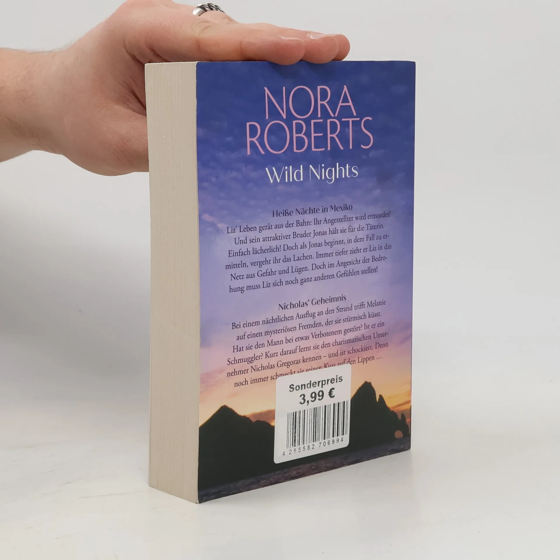 Heiße Nächte in Mexiko: Liz‘ Leben gerät aus der Bahn: Ihr Angestellter wird ermordet! Und sein attraktiver Bruder Jonas hält sie für die Täterin. Einfach lächerlich! Doch als Jonas beginnt, in dem Fall zu ermitteln, vergeht ihr das Lachen. Immer tiefer zieht er Liz in das Netz aus Gefahr und Lügen. Doch im Angesicht der Bedrohung muss sich Liz sich noch ganz anderen Gefühlen stellen! Nicholas’ Geheimnis: Bei einem nächtlichen Ausflug an den Strand trifft Melanie auf einen mysteriösen Fremden, der sie stürmisch küsst. Hat sie den Mann bei etwas Verbotenem gestört? Ist er ein Schmuggler? Kurz darauf lernt sie den charismatischen Unternehmer Nicholas Gregoras kennen - und ist schockiert. Denn noch immer schmeckt sie seinen Kuss auf den Lippen … „Ein Fest der Gefühle!“ Publishers Weekly „Die Romantik wird niemals sterben, solange Bestsellerautorin Nora Roberts darüber schreibt.“ Kirkus Review