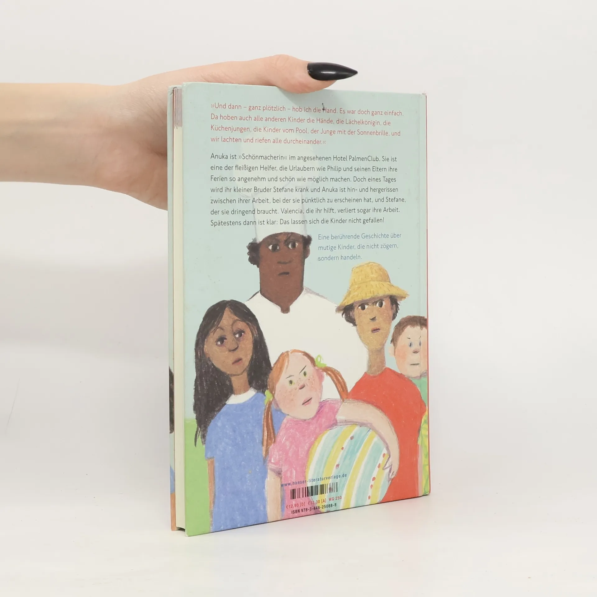 Wie jedes Jahr verbringt Philip die Ferien im PalmenClub. Dort ist es herrlich. Und er sieht Anuka wieder! Doch die Elfjährige muss jeden Tag früh aufstehen, ihre Brüder wecken und zur Arbeit gehen. Denn sie gehört zu denen, die Urlaubern wie Philips Familie ihre Ferien erst so angenehm machen. Jetzt ist aber ihr kleiner Bruder Stefane krank und Anuka ist hin- und hergerissen zwischen ihrer Arbeit, bei der sie pünktlich zu erscheinen hat, und dem fiebernden Stefane. Als dann auch noch Valencia, die ihr hilft, ihre Arbeit verliert, ist klar: Das lassen sich die Kinder nicht gefallen! Ein Buch über Armut und Ungerechtigkeit – aber auch darüber, was Freundschaft und Solidarität bewirken können.