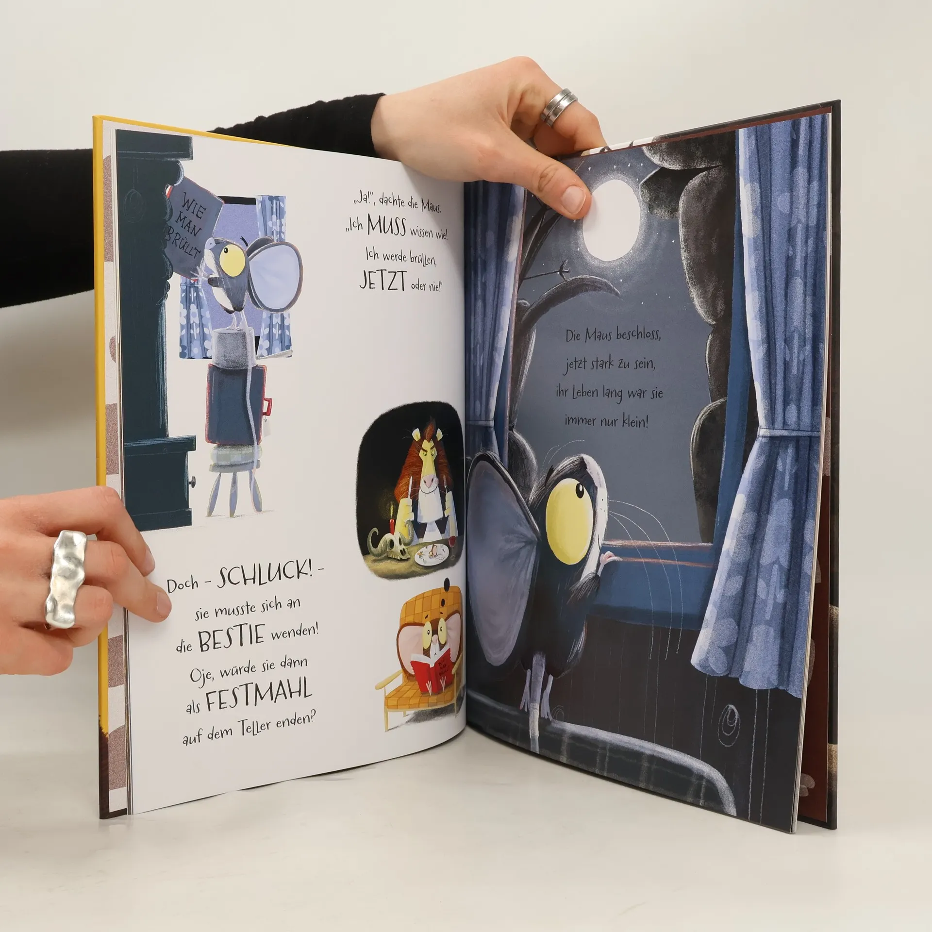 Die erste Geschichte der Erfolgsreihe von Rachel Bright und Jim Field Klein zu sein ist nicht immer einfach. Wer könnte das besser wissen als die Maus? Man wird vergessen, übersehen und geschubst. Wenn sie doch nur so brüllen könnte wie der Löwe, dann würde ihr das nicht mehr passieren! Sie fasst all ihren Mut zusammen und beschließt, den mächtigen Löwen zu besuchen. Denn wer könnte ihr das Brüllen besser beibringen als der Löwe? Am Ende ihrer abenteuerlichen Reise macht die Maus eine Entdeckung: Man muss gar nicht groß und stark sein, um seine Ängste zu überwinden.