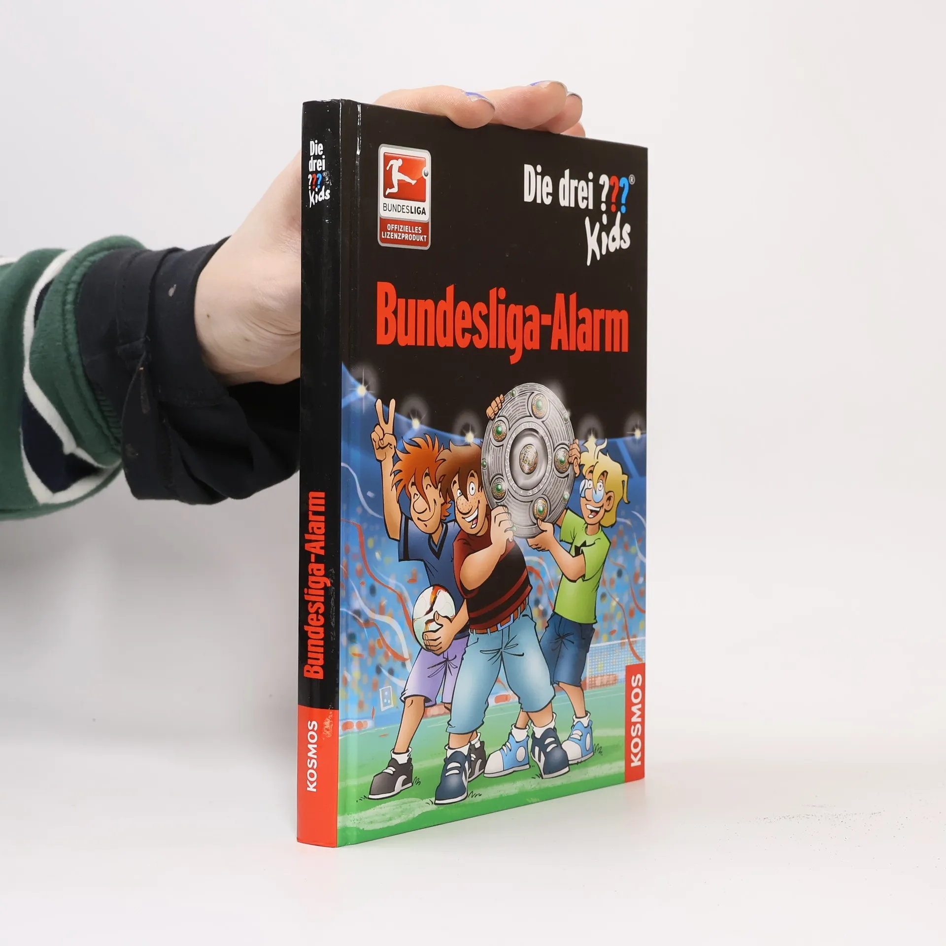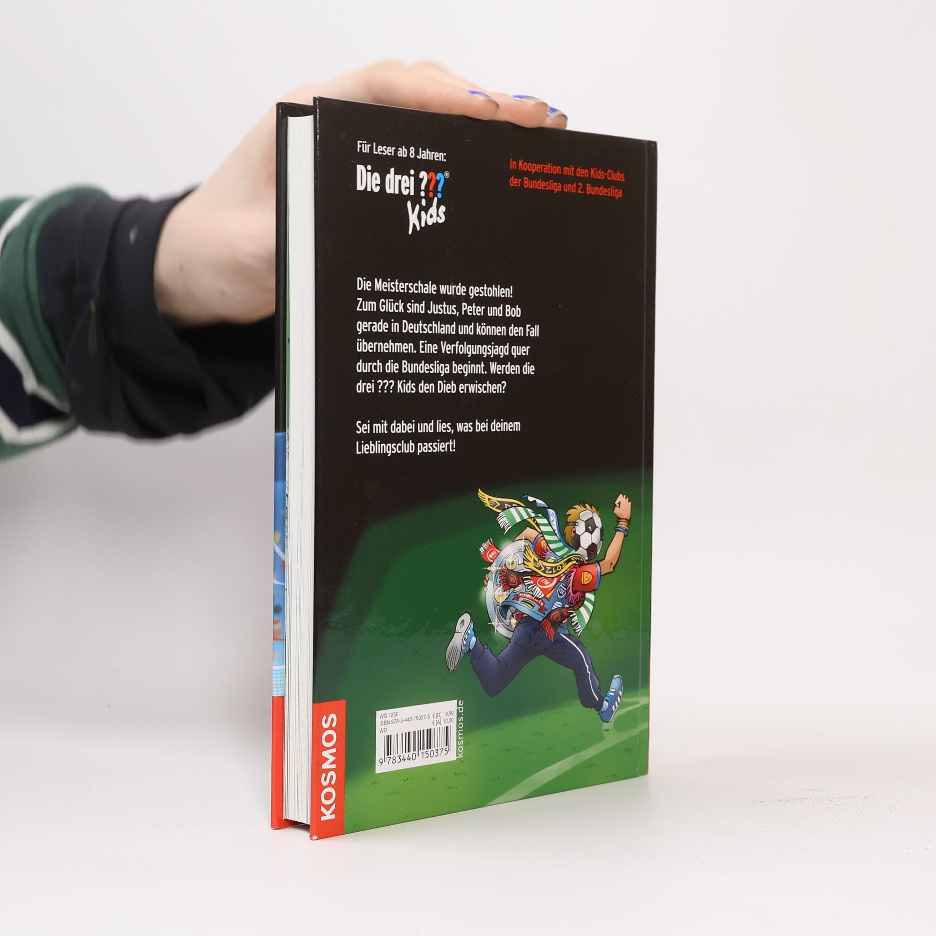 Justus, Peter und Bob machen gemeinsam mit Tante Mathilda und Onkel Titus eine Deutschlandreise. Dabei geraten sie mitten in einen Fall, der sie zu 27 Vereinen der Bundesliga führt: Die Meisterschale wurde gestohlen! Glücklicherweise sind Justus, Peter und Bob gerade vor Ort und können den Fall übernehmen. Der wahnsinnige Dieb jagt die drei ??? Kids quer durch die Bundesliga, vom Hamburger SV bis zum FC Bayern, von Eintracht Braunschweig bis zum VfB Stuttgart. In insgesamt 27 Fußballclubs müssen die Kult-Detektive vor Ort ermitteln. Werden sie den dreisten Dieb erwischen? Bundesliga club logos and DFL logos are protected trademarks of the respective clubs/organisations and are used with the kind permission of the respective owners. Manufactured under license from the DFL/Ligaverband in sole responsibility of Franckh-Kosmos Verlags-GmbH & Co. KG