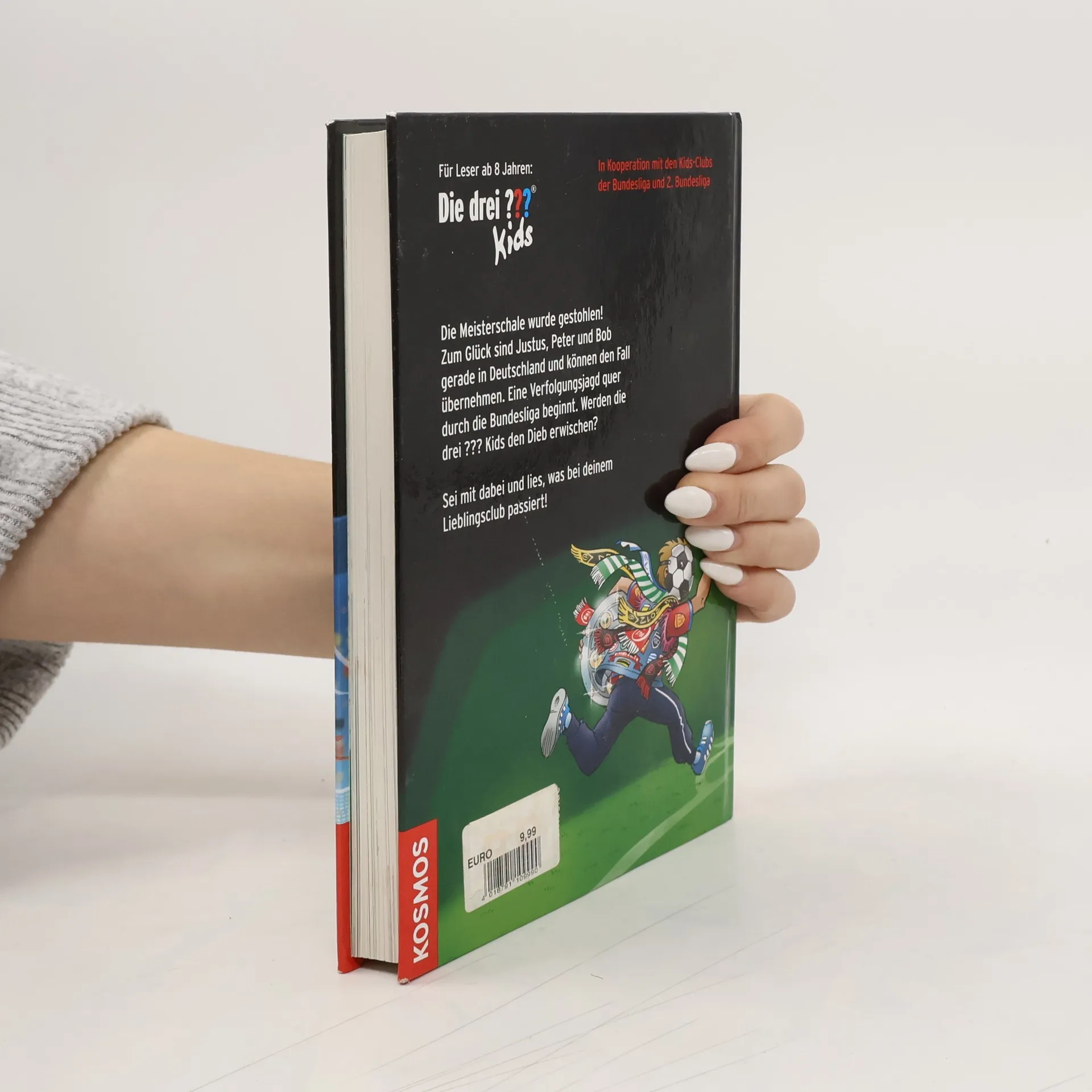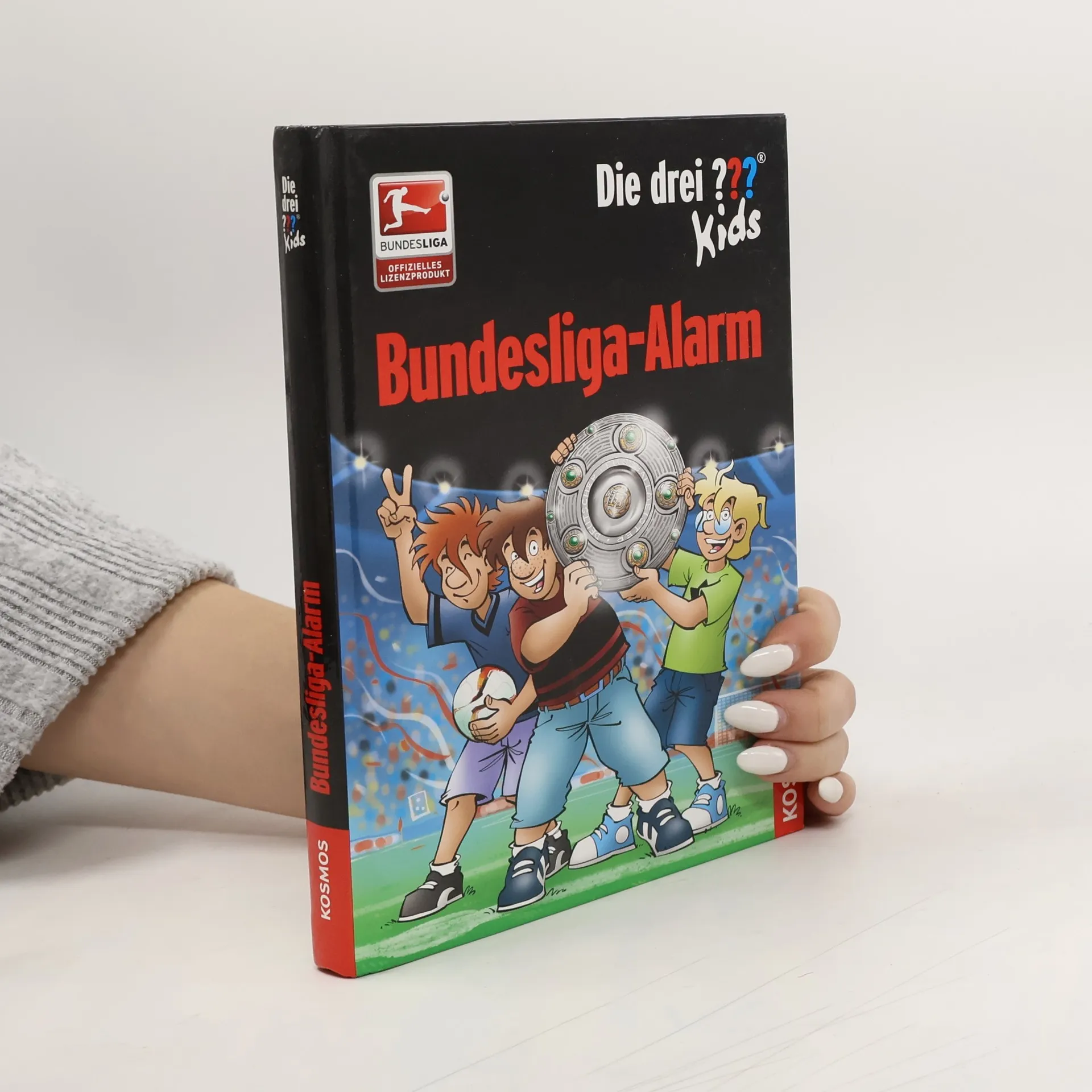 Justus, Peter und Bob machen gemeinsam mit Tante Mathilda und Onkel Titus eine Deutschlandreise. Dabei geraten sie mitten in einen Fall, der sie zu 27 Vereinen der Bundesliga führt: Die Meisterschale wurde gestohlen! Glücklicherweise sind Justus, Peter und Bob gerade vor Ort und können den Fall übernehmen. Der wahnsinnige Dieb jagt die drei ??? Kids quer durch die Bundesliga, vom Hamburger SV bis zum FC Bayern, von Eintracht Braunschweig bis zum VfB Stuttgart. In insgesamt 27 Fußballclubs müssen die Kult-Detektive vor Ort ermitteln. Werden sie den dreisten Dieb erwischen? Bundesliga club logos and DFL logos are protected trademarks of the respective clubs/organisations and are used with the kind permission of the respective owners. Manufactured under license from the DFL/Ligaverband in sole responsibility of Franckh-Kosmos Verlags-GmbH & Co. KG