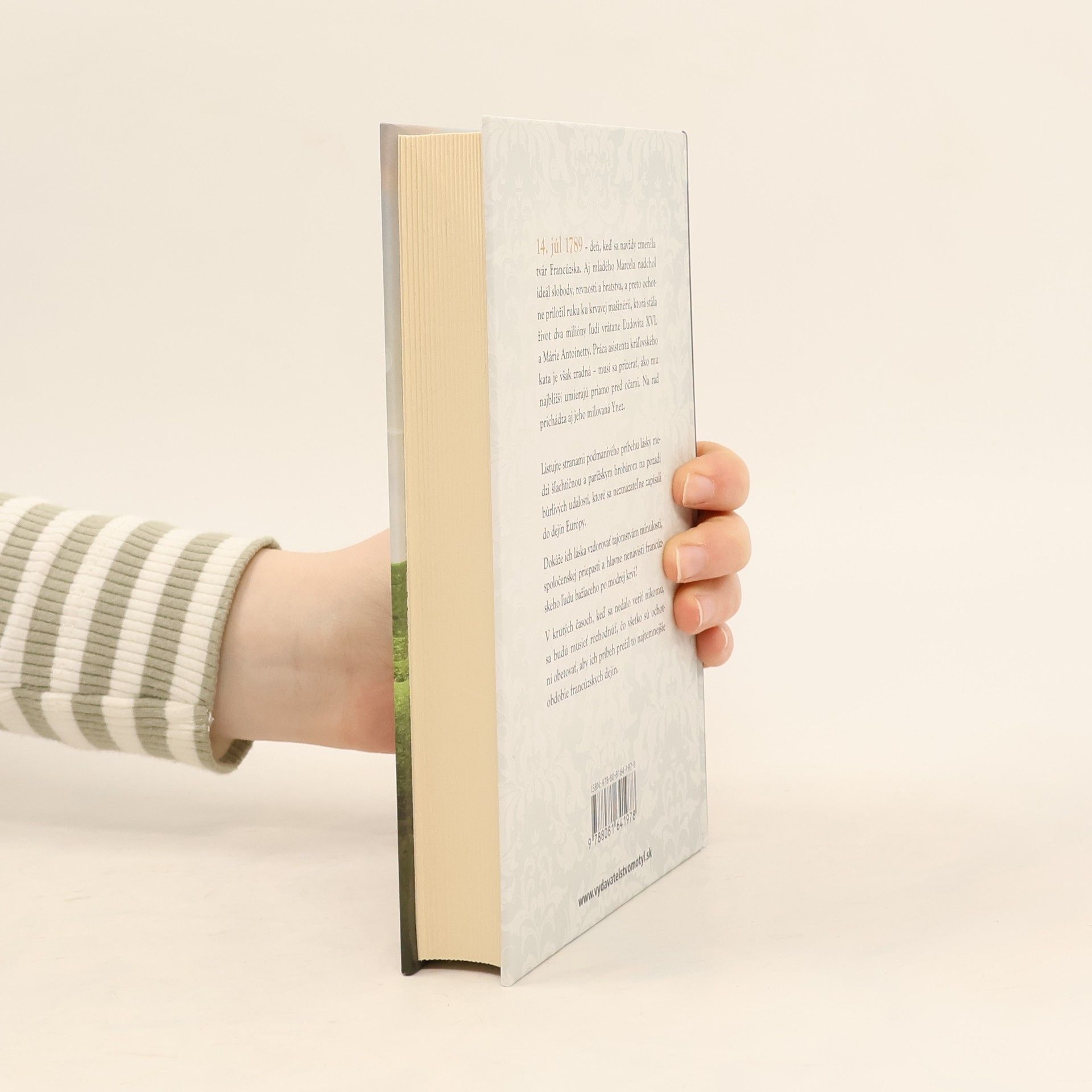 14. júl 1789 - deň keď sa navždy zmenila tvár Francúzska. Aj mladého Marcela nadchol ideál slobody, rovnosti a bratstva,a preto ochotne priloží ruku ku krvavej mašinérií, ktorá stála život dva milióny ľudí vrátane Ľudovíta XVI. a Márie Antoinetty. Práca asistenta kráľovského kata je však zradná- musí sa prizerať,ako mu najbližší umierajú priamo pred očami. Na rad prichádza aj jeho milovaná Ynez. Listujte stranami podmanivého príbehu lásky medzi šľachtičnou,a parížskym hrobárom na pozadí búrlivých udalostí, ktoré sa nezmazateľne zapísali do dejín Európy. Dokáže ich láska vzdorovať tajomstvám minulosti , spoločenskej priepasti a hlavne nenávisti francúzskeho ľudu bažiaceho po modrej krvi? V krutých časoch, keď sa nedalo veriť nikomu sa budú musieť rozhodnúť, čo všetko sú ochotní obetovať, aby ich príbeh prežil to najtemnejšie obdobie francúzskych dejín.