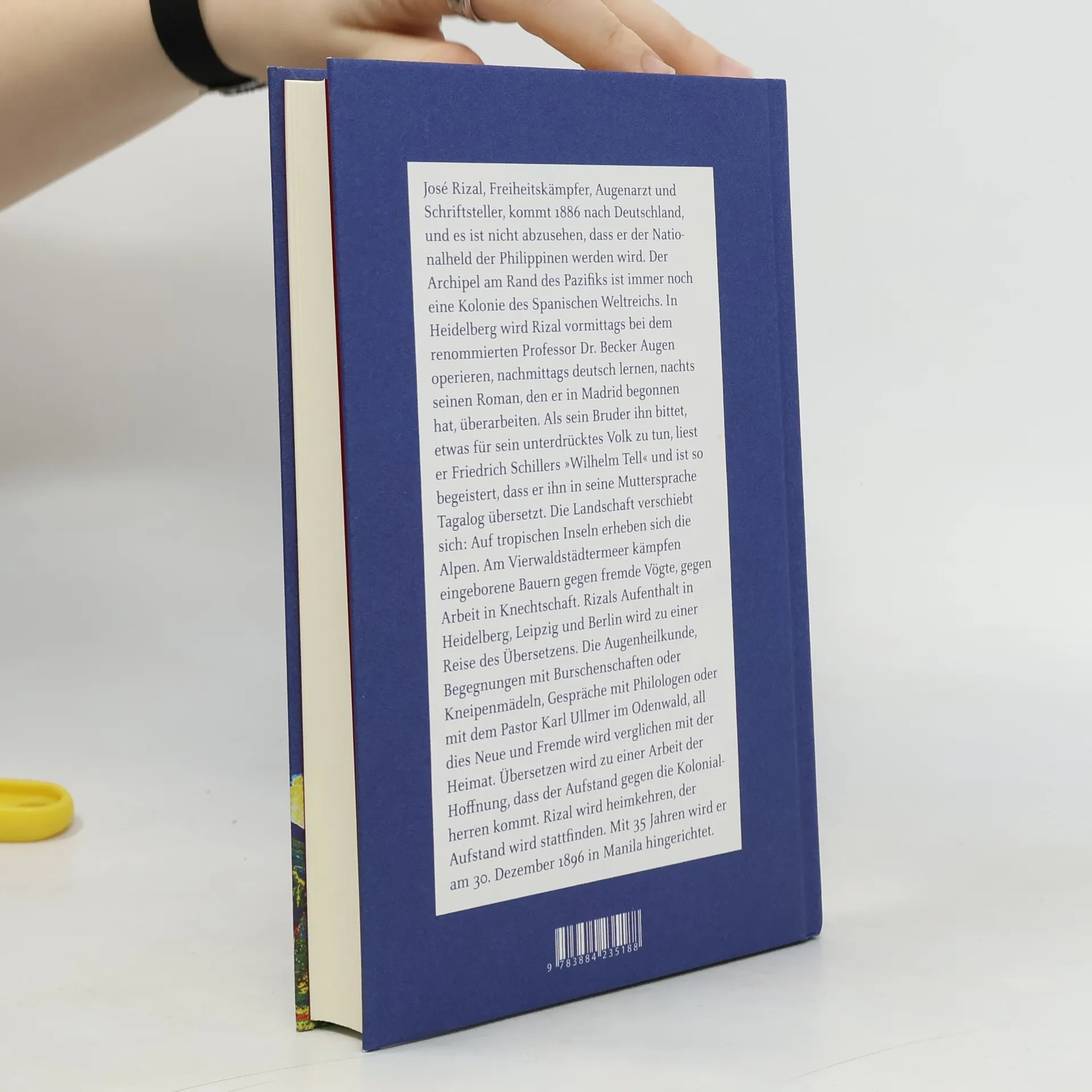 Als junger Augenarzt und Romancier kommt José Rizal 1886 nach Deutschland, ohne zu ahnen, dass er einmal Nationalheld der Philippinen werden wird. Der Archipel ist eine Kolonie des spanischen Weltreichs, in der Bildung nur in den engen Grenzen jesuitischer Klosterschulen erlaubt ist. Rizals liberalen Ideen in Madrid führen dazu, dass sein Bruder ihn vor einer Rückkehr nach Manila warnt und ihm ein Leben in Deutschland empfiehlt. In Heidelberg und Leipzig übersetzt Rizal Schillers „Wilhelm Tell“ ins Tagalog. Diese Landschaft wird zur Kulisse für seinen Protest gegen die Kolonialherren und die katholische Kirche. Rizals Aufenthalt wird zu einer Reise des Übersetzens und des Vergleichs zwischen Neuem und Vertrautem. Seine Fortbildung in Augenheilkunde, Begegnungen mit Studenten und Gespräche mit Philologen inspirieren ihn, Worte in Tagalog zu finden und Analogien zu bilden. Übersetzen wird zur Hoffnung auf einen Aufstand gegen die Kolonialherren und zur Entdeckung der Angst vor der Gewalt, die jede Ordnung zerstört. Schließlich kehrt Rizal heim, der Aufstand findet statt, und er wird 1896 in Manila wegen Anstiftung zur Rebellion verurteilt und hingerichtet. Der Roman verwebt Rizals Reisen und Begegnungen mit der Geschichte des Schweizer Freiheitshelden Tell, wobei Dichtung und Dokument fließend ineinander übergehen. Annette Hug, geboren 1970 in der Schweiz, lebt heute als freie Autorin in Zürich.