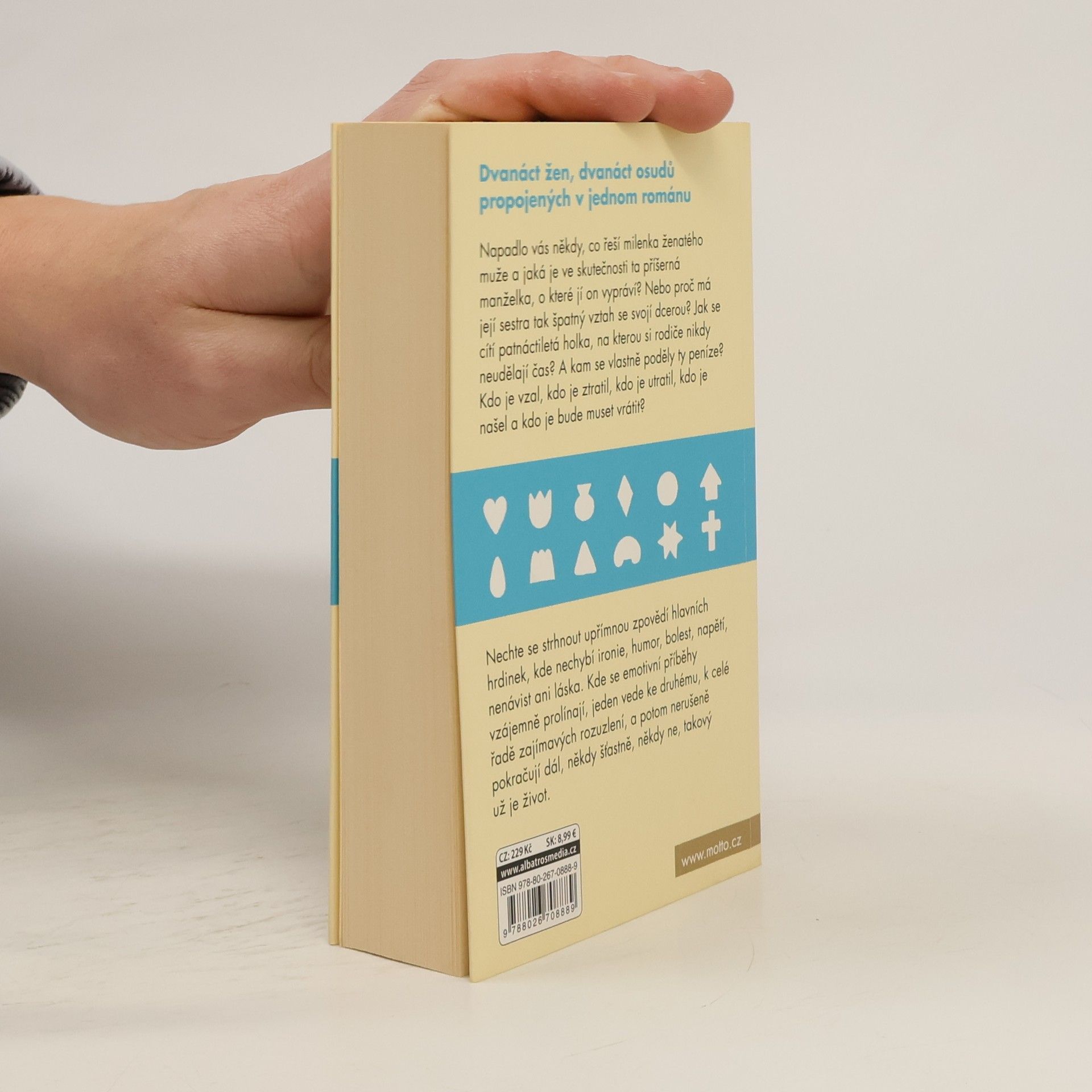 Dvanáct žen, dvanáct osudů propojených v jednom románu. Napadlo vás někdy, co řeší milenka ženatého muže a jaká je ve skutečnosti ta příšerná manželka, o které jí on vypráví? Nebo proč má sestra manželky tak špatný vztah se svojí dcerou. Jak se vlastně cítí ta patnáctiletá holka, na kterou si rodiče nikdy neudělají čas? A kam se vlastně poděly ty peníze? Kdo je vzal, kdo je ztratil, kdo je utratil, kdo je našel a kdo je bude muset vrátit? Nechte se strhnout upřímnou zpovědí hlavních hrdinek, kde nechybí ironie, humor, bolest, napětí, nenávist ani láska. Kde se emotivní příběhy vzájemně prolínají, jeden vede ke druhému, k celé řadě zajímavých rozuzlení a potom nerušeně pokračují dál, někdy šťastně, někdy ne, takový už je život.