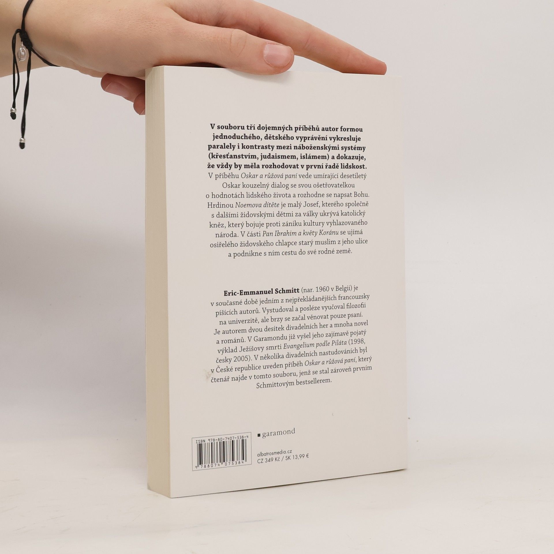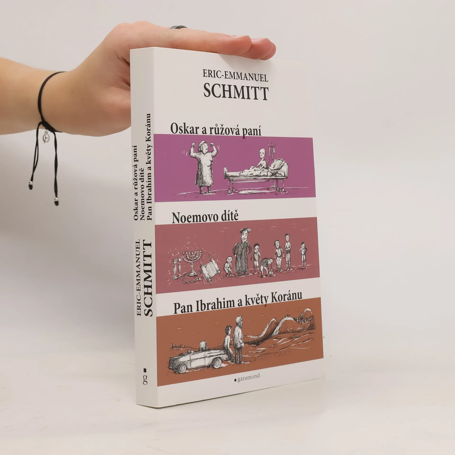 Společné vydání tří působivých příběhů s tématem velkých světových náboženství. Titulní hrdina první novely, desetiletý Oskar, umírá na rakovinu a prožívá v nemocnici svých posledních deset dnů života. Se svou starou ošetřovatelkou Růženkou vede nekončící rozhovor o Bohu a víře. Vážně i s humorem se oba staví k otázkám o smyslu života. Druhá novela vypráví příběh kněze, ukrývajícího za války v katolickém penzionátu židovské děti. Kromě dětí samotných ale zachraňuje i jejich kulturu: tajně shromažďuje kultovní předměty judaismu a zaslouží se o to, že děti neztratí kontakt se svým původem a náboženstvím. Poslední příběh je o přátelství židovského chlapce Moma a starého Araba Ibrahima. Po smrti chlapcova otce ho Ibrahim adoptuje a odjíždějí spolu na prázdninovou cestu do Ibrahimova rodiště, kde Ibrahim umírá a dospívající Momo po něm přebírá jeho koloniál, víru i životní filosofii.