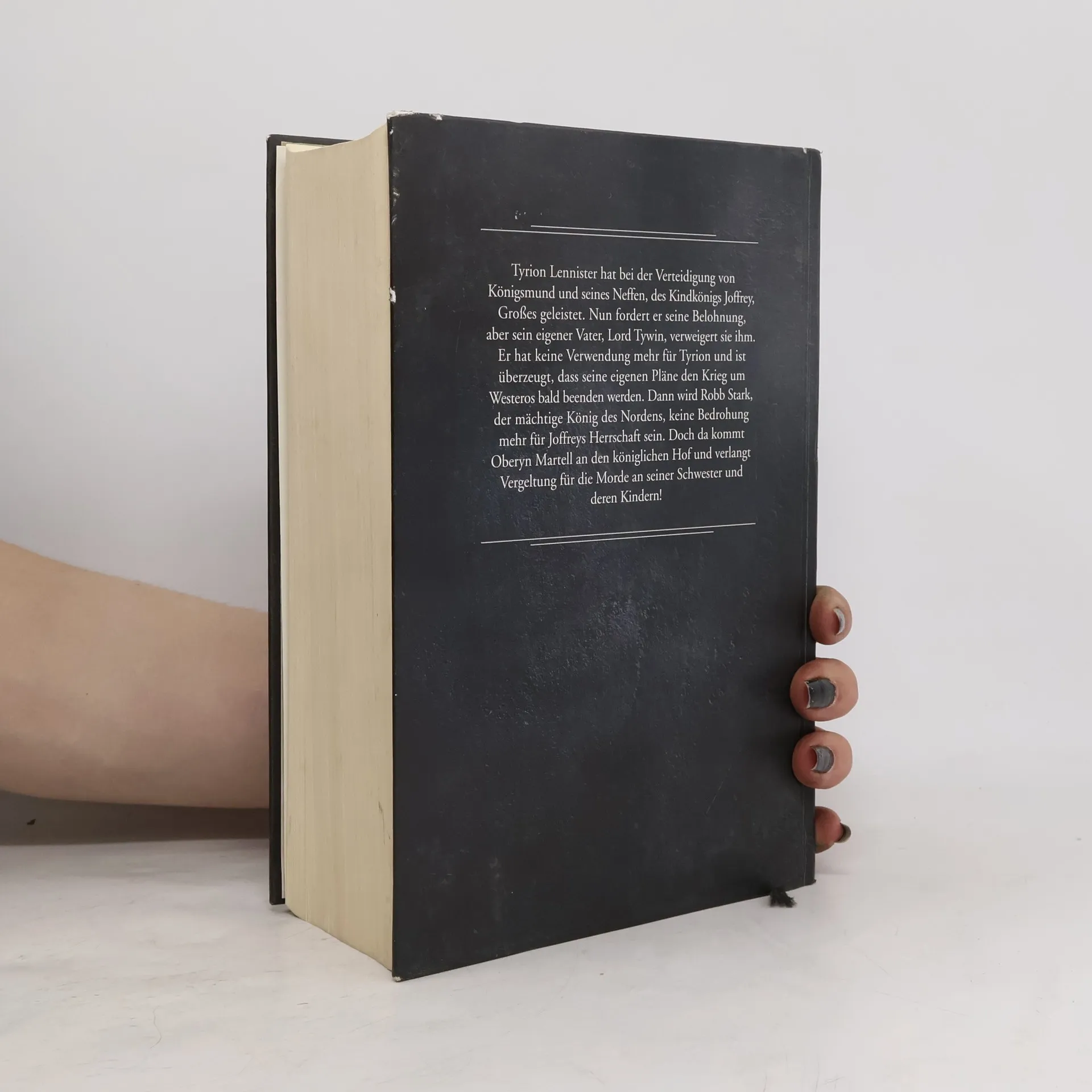Die erfolgreichste Serie unserer Zeit – die Bände 5 und 6 von Das Lied von Eis und Feuer als ungeteilte Sonderausgabe Tyrion Lennister hat bei der Verteidigung von Königsmund und seines Neffen, des Kindkönigs Joffrey, Großes geleistet. Nun fordert er seine Belohnung, aber sein eigener Vater, Lord Tywin, verweigert sie ihm. Er hat keine Verwendung mehr für Tyrion und ist überzeugt, dass seine eigenen Pläne den Krieg um Westeros bald beenden werden. Dann wird Robb Stark, der mächtige König des Nordens, keine Bedrohung mehr für Joffreys Herrschaft sein. Doch da kommt Oberyn Martell an den königlichen Hof und verlangt Vergeltung für die Morde an seiner Schwester und deren Kinder – Morde, die Tywin Lennistern persönlich befohlen hat. Hier zum ersten Mal in einer ungeteilten deutschsprachigen Ausgabe zusammengefasst: Das Lied von Eis und Feuer 05 - Sturm der Schwerter (ISBN 978-3-442-26846-7) Das Lied von Eis und Feuer 06 - Die Königin der Drachen (ISBN 978-3-442-26847-4)
