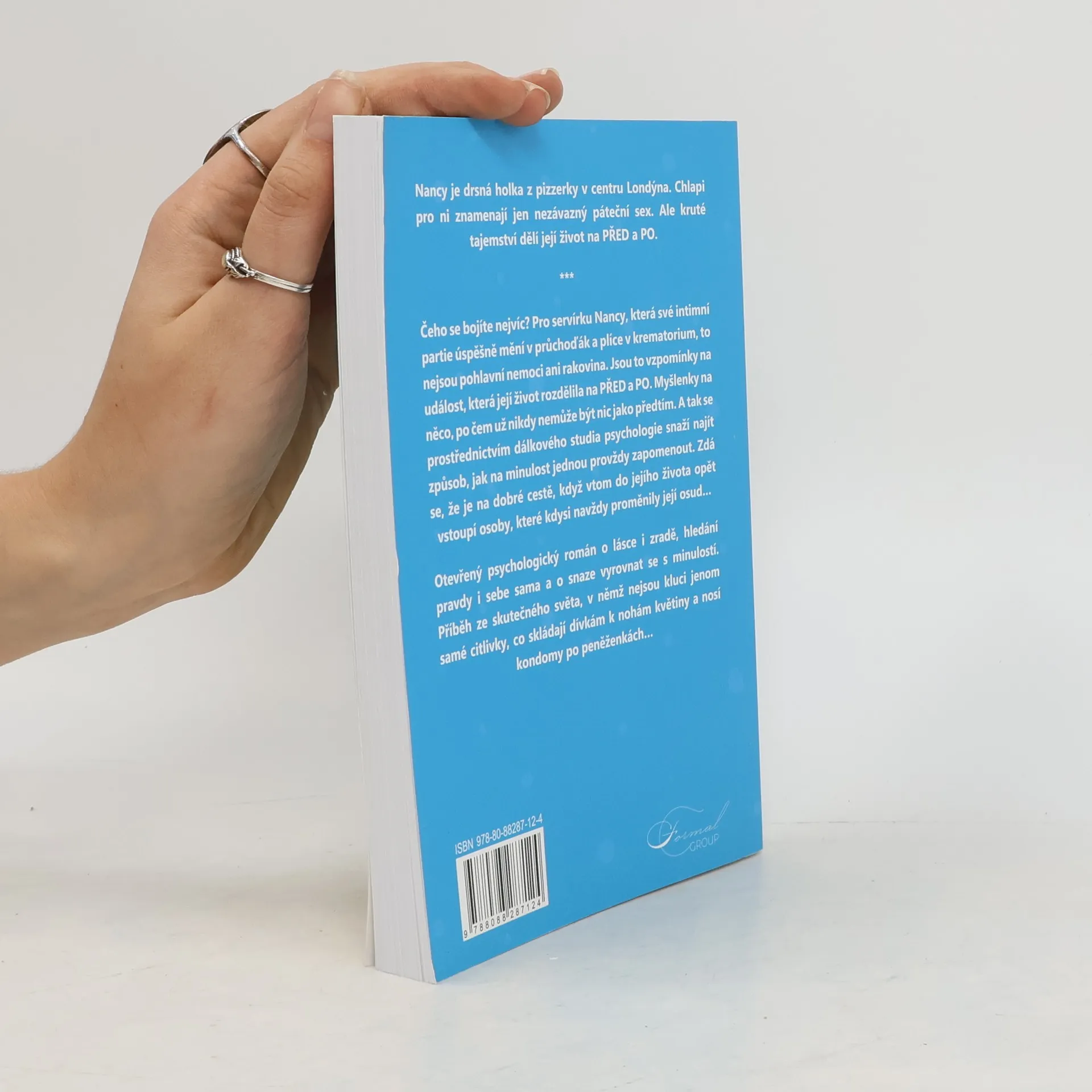 Nancy je drsná holka z pizzerky v centru Londýna. Chlapi pro ni znamenají jen nezávazný páteční sex. Ale kruté tajemství dělí její život na PŘED a PO. Čeho se bojíte nejvíc? Pro servírku Nancy, která své intimní partie úspěšně mění v průchoďák a plíce v krematorium, to nejsou pohlavní nemoci ani rakovina. Jsou to vzpomínky na událost, která její život rozdělila na PŘED a PO. Myšlenky na něco, po čem už nikdy nemůže být nic jako předtím. A tak se prostřednictvím dálkového studia psychologie snaží najít způsob, jak na minulost jednou provždy zapomenout. Zdá se, že je na dobré cestě, když vtom do jejího života opět vstoupí osoby, které kdysi navždy proměnily její osud… Otevřený psychologický román o lásce i zradě, hledání pravdy i sebe sama a o snaze vyrovnat se s minulostí. Příběh ze skutečného světa, v němž nejsou kluci jenom samé citlivky, co skládají dívkám k nohám květiny a nosí kondomy po peněženkách…