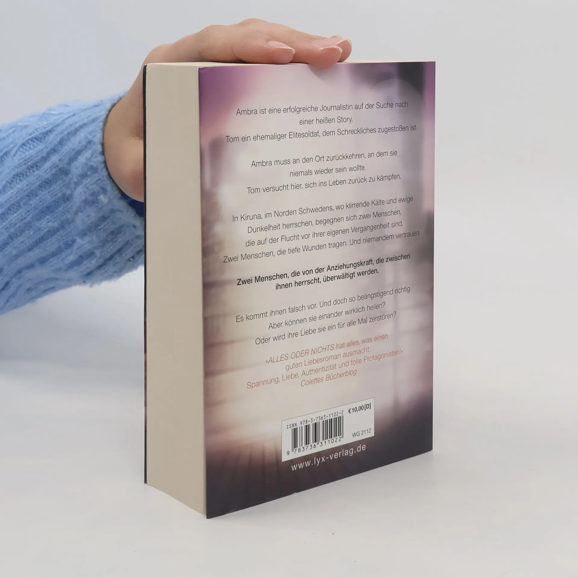 Glamour, Intrigen und große Gefühle Ambra ist eine erfolgreiche Journalistin auf der Suche nach einer heißen Story. Tom ein ehemaliger Elitesoldat, dem Schreckliches zugestoßen ist. Ambra muss an den Ort zurückkehren, an dem sie niemals wieder sein wollte. Tom versucht hier, sich ins Leben zurück zu kämpfen. In Kiruna, im Norden Schwedens, wo klirrende Kälte und ewige Dunkelheit herrschen, begegnen sich zwei Menschen, die auf der Flucht vor ihrer eigenen Vergangenheit sind. Zwei Menschen, die tiefe Wunden tragen. Und niemandem vertrauen. Zwei Menschen, die von der Anziehungskraft, die zwischen ihnen herrscht, überwältigt werden. Es kommt ihnen falsch vor. Und doch so beängstigend richtig. Aber können sie einander wirklich heilen? Oder wird ihre Liebe sie ein für alle Mal zerstören? „ALLES ODER NICHTS hat alles, was einen guten Liebesroman ausmacht: Spannung, Liebe, Authentizität und tolle Protagonisten!“ COLETTES BÜCHERBLOG Abschlussband der schwedischen Bestseller-Trilogie