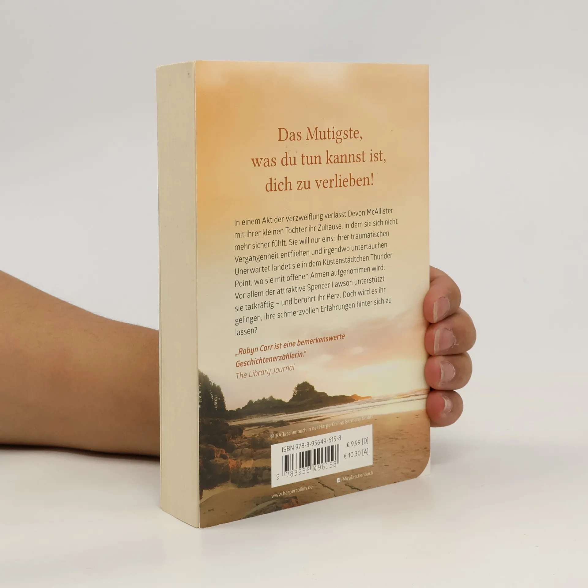 In einem Akt der Verzweiflung verlässt Devon MCAllister mit ihrer kleinen Tochter ihr Zuhause, in dem sie sich nicht mehr sicher fühlt. Sie will nur eins: ihrer traumatischen Vergangenheit entfliehen und irgendwo untertauchen. Unerwartet landet sie in dem Küstenstädtchen Thunder Point, wo sie mit offenen Armen aufgenommen wird. Vor allem der attraktive Spencer unterstützt sie tatkräftig-und berührt ihr Herz. Doch wird es ihr gelingen, ihre schmerzvollen Erfahrungen hinter sich zu lassen? „Robyn Carr ist eine bemerkenswerte Geschichtenerzählerin.“ The Library Journal
