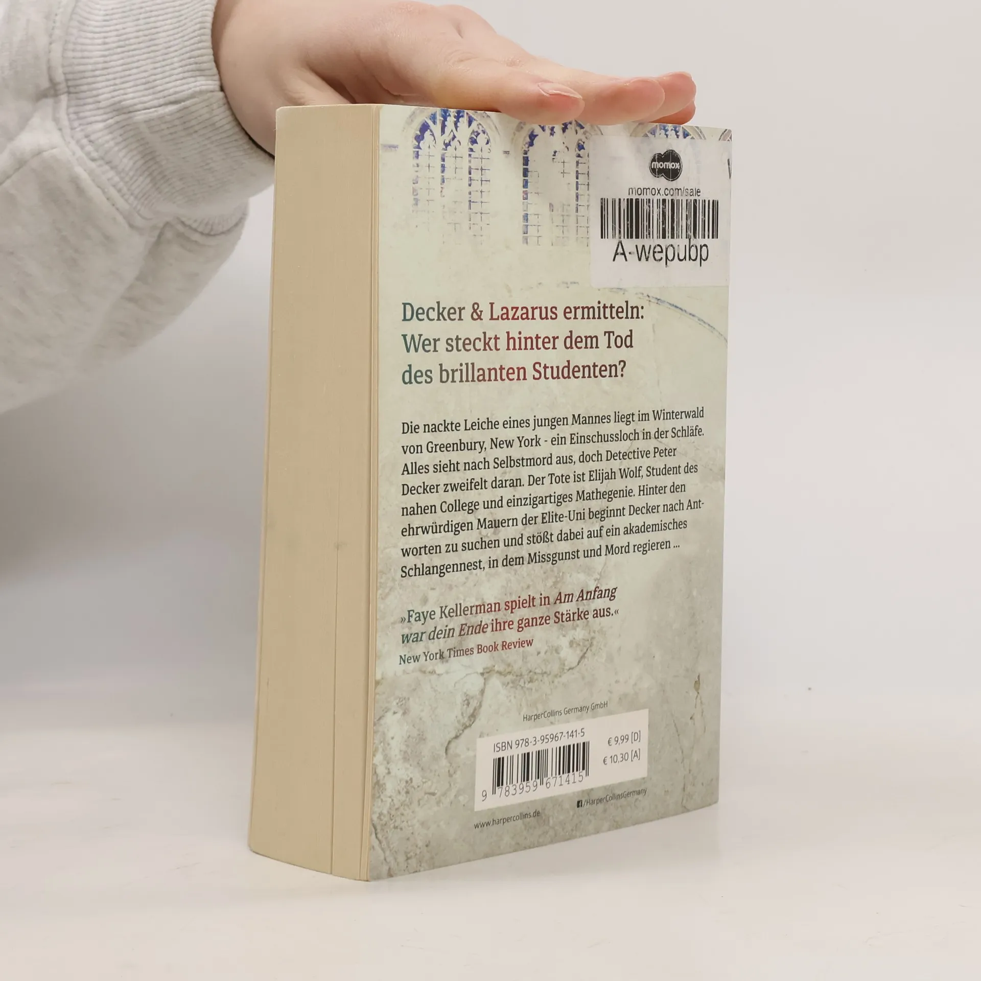 Die nackte Leiche eines jungen Mannes liegt im Winterwald von Greenbury, New York - ein Einschussloch in der Schläfe. Alles sieht nach Selbstmord aus, doch Detective Peter Decker zweifelt daran. Der Tote ist Elijah Wolf, Student des nahen College und einzigartiges Mathegenie. Hinter den ehrwürdigen Mauern der Elite-Uni beginnt Decker nach Antworten zu suchen und stößt dabei auf ein akademisches Schlangennest in dem Missgunst und Mord regieren … Brutal - aber zugleich tiefsinnig, sehr gut geplotted und rasant geschrieben" Observer