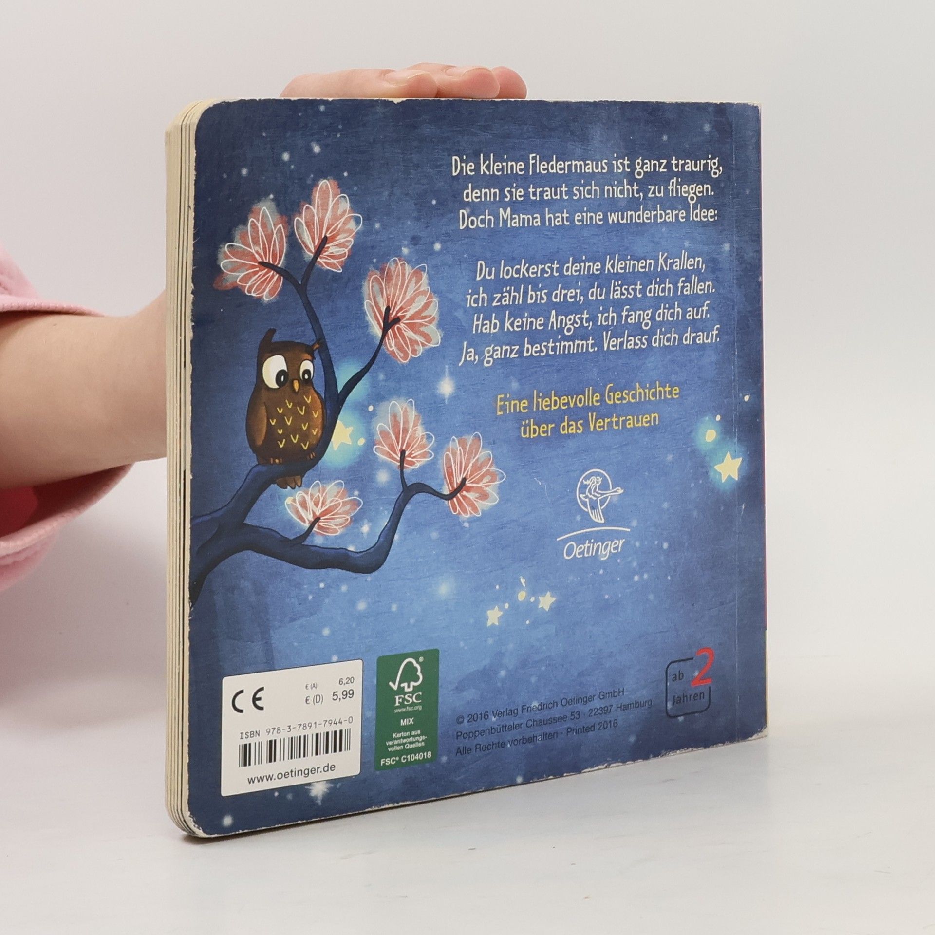 Die kleine Fledermaus ist ganz unglücklich, denn sie traut sich nicht zu fliegen. Ihre Mama versucht ihr Mut zu machen und versichert ihr, dass sie immer für sie da ist und sie auffangen wird. Du schaffst das, kleine Fledermaus! Mit den Reimen von Erfolgsautorin Susanne Lütje („Der liebste Papa der Welt“) macht „Trau dich, kleine Fledermaus“ nicht nur ganz viel Mut, sondern auch richtig Spaß. Ermutigende, positive und motivierende Botschaft für Kinder ab 18 Monaten: Hilft Kindern, Mut zu fassen und neue Dinge auszuprobieren. Ideal geeignet für schüchterne, zurückhaltende und ängstliche Kinder . Schön gereimt , mit altersgerechtem Textanteil und farbenfrohen Illustrationen.