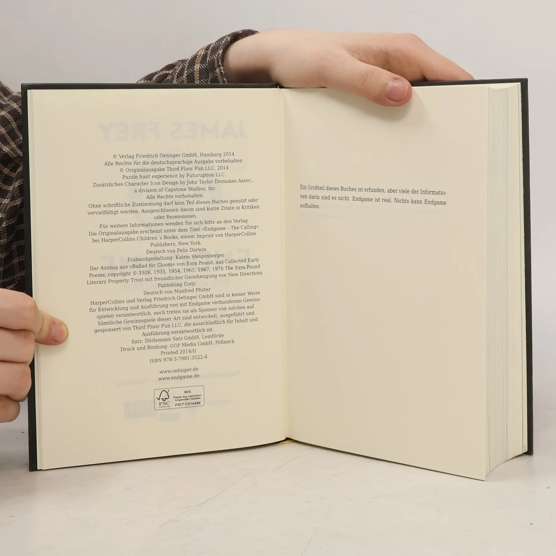 ENDGAME. Zwölf Meteoriten. Zwölf Spieler. Nur einer kommt durch. Als zwölf Meteoriten nahezu gleichzeitig an unterschiedlichen Orten der Erde einschlagen, gibt es keinen Zweifel mehr: Die Zeit ist gekommen. ENDGAME hat begonnen! Jeder der Meteoriten überbringt eine Nachricht, die die zwölf Auserwählten entschlüsseln müssen und die sie schließlich an einem geheimnisvollen Ort zusammenführt. Dort stehen sie ihren Gegnern zum ersten Mal gegenüber. Ein Wettkampf auf Leben und Tod beginnt und eine rücksichtslose Jagd um den gesamten Globus. Die Spieler müssen zu allem bereit sein. Wird Arroganz Bescheidenheit schlagen? Klugheit Stärke übertreffen? Wird Gnadenlosigkeit am Ende siegen? Schönheit von Nutzen sein? Muss man ein guter Mensch sein, um zu überleben? ENDGAME wird es zeigen. Aber nur wer die Hinweise richtig deutet und die drei Schlüssel findet, geht als Gewinner hervor. Und nur seine Linie wird überleben, wenn die gesamte Menschheit vernichtet wird. Mehr als ein Buch - Geheime Botschaften im Text und Links im Buch führen zu einem gigantischen Krypto-Rätsel im Netz. Der SPIEGEL-Bestseller ENDGAME von James Frey ist ein einzigartiges, crossmediales Konzept, das neben Buch und Krypto-Rätsel auch ein aufwendiges Handy-Spiel sowie einen Kinofilm umfasst.