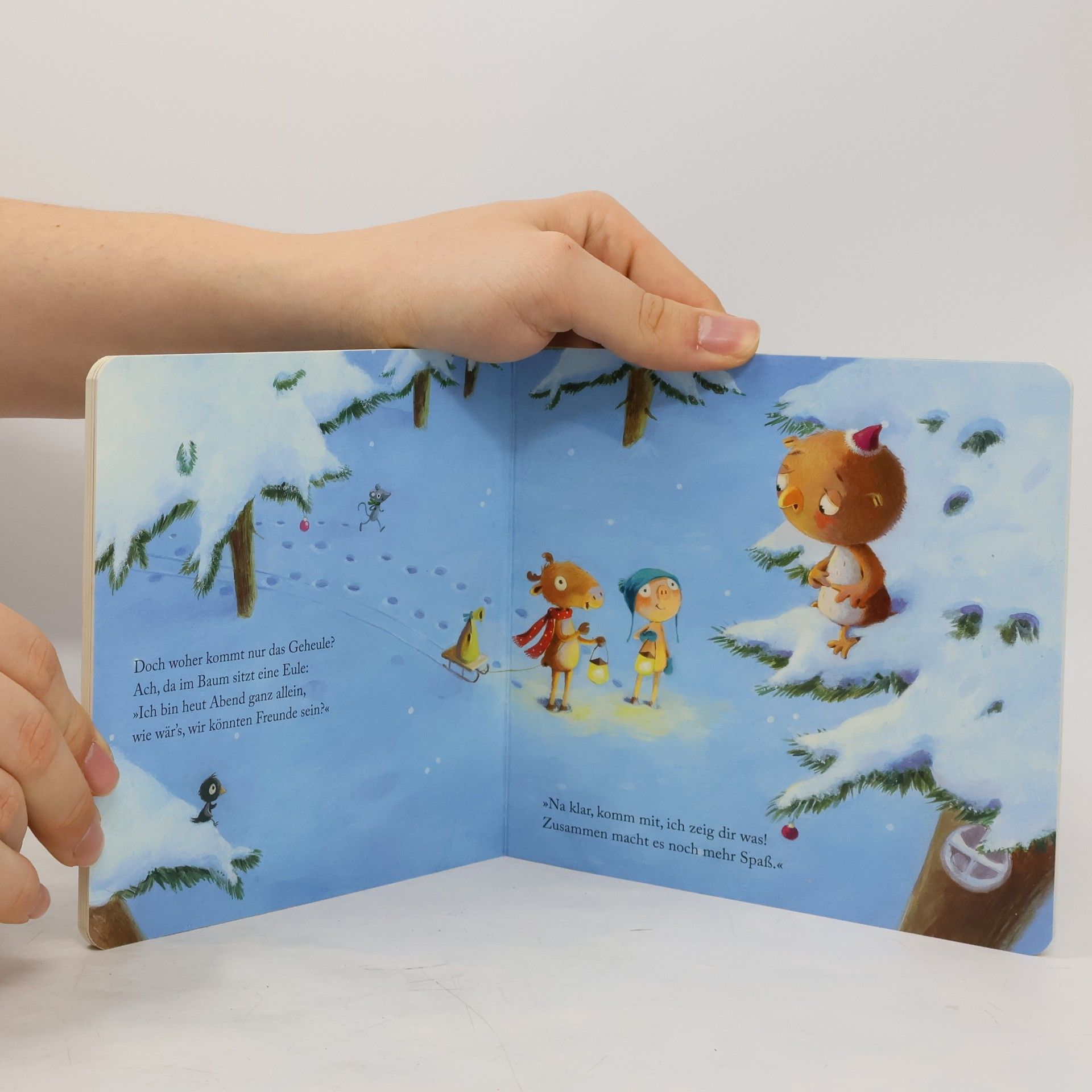 „Frohe Weihnachten, kleiner Elch!“ erzählt die herzerwärmende Geschichte eines kleinen Elches, der an Heiligabend durch den Winterwald stapft. Auf seiner Reise trifft er verschiedene Tiere – ein kleines Schweinchen, eine Maus, einen Bären und eine Eule –, die traurig sind, weil sie den Abend alleine verbringen müssen. Der kleine Elch lädt sie ein, ihm zu folgen, und verspricht, dass es zusammen mehr Spaß macht. Dies führt zu einer fröhlichen Weihnachtsfeier, bei der die Tiere die Bedeutung von Freundschaft und Gemeinschaft erfahren. Die Geschichte erinnert daran, dass das Zusammensein mit anderen eine der größten Freuden der Weihnachtszeit ist. Anne-Kristin zur Brügges Buch vermittelt Mitgefühl, Freundschaft und das Teilen von Freude. Mit stimmungsvollen Reimen und liebevollen Illustrationen von Marina Rachner lädt es zum Vorlesen und Zuhören ein. Es ist speziell für kleine Kinderhände gemacht und spricht mit seinen niedlichen Charakteren und der einfachen, kraftvollen Botschaft Kinder und Eltern gleichermaßen an. Das Buch ist eine wertvolle Ergänzung für jede weihnachtliche Buchsammlung und bietet eine wunderbare Gelegenheit, die festliche Zeit gemeinsam zu genießen. Ideal für die Weihnachtszeit, fördert es Werte wie Zusammenhalt und gegenseitige Unterstützung. Die liebevollen Illustrationen und eingängigen Reime machen es perfekt für Vorlesestunden. Ein hochwertiges Pappbilderbuch, das als Geschenk zur Weihnachtszeit oder fü