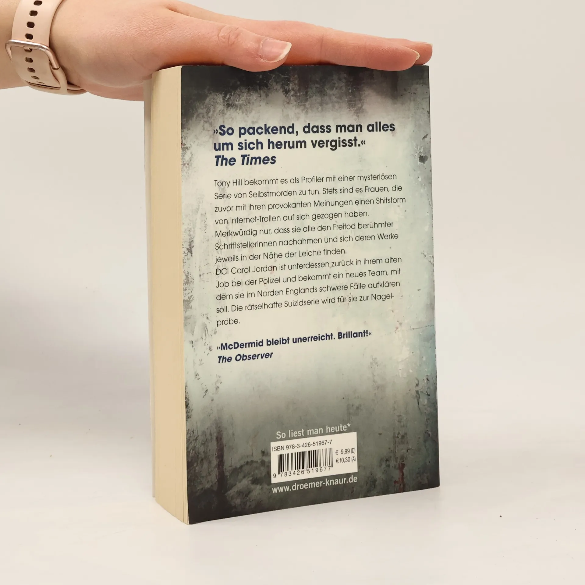 Ein spannender Thriller von Crime-Queen Val McDermid, indem sich das Ermittlerduo Carol Jordan und Tony Hill durch ein Geflecht von Verleumdung, Internet-Trollen und einer steigenden Zahl von Leichen starker Frauen kämpfen muss: Im neunten Band der Thriller-Bestseller-Reihe ist die Polizei im englischen Bradfield mit einer Serie mysteriöser Selbstmorde konfrontiert. Stets sind es Frauen, die mitten im Leben stehen. Jede imitiert auf seltsame Weise den Freitod einer berühmten Schriftstellerin wie Virginia Woolf, Sylvia Plath oder Anne Sexton, deren Werke jeweils in der Nähe der Toten gefunden werden. Die Frauen hatten zuvor mit ihrer provokanten Meinung einige Trolle im Internet auf sich gezogen, die einen Shitstorm lostraten. Konnten die Frauen diesen nicht verkraften? Oder ist hier ein Serienkiller am Werk, dessen kaltblütige Manipulationen weitere Opfer fordert? In diesem atemlos spannenden Thriller muss das Ermittlerduo um Detective Chief Inspector Carol Jordan und Polizeipsychologe Tony Hill zunächst neu zusammenfinden, um den mysteriösen Fall zu lösen. Carol ist trotz der schlimmen Bluttaten der Vergangenheit wieder im Dienst, die aktuelle Selbstmord-Serie wird jedoch zu einer weiteren spannenden Zerreißprobe. Alles deutet auf einen perfiden Serienkiller hin, der nur schwer zu durchschauen ist...