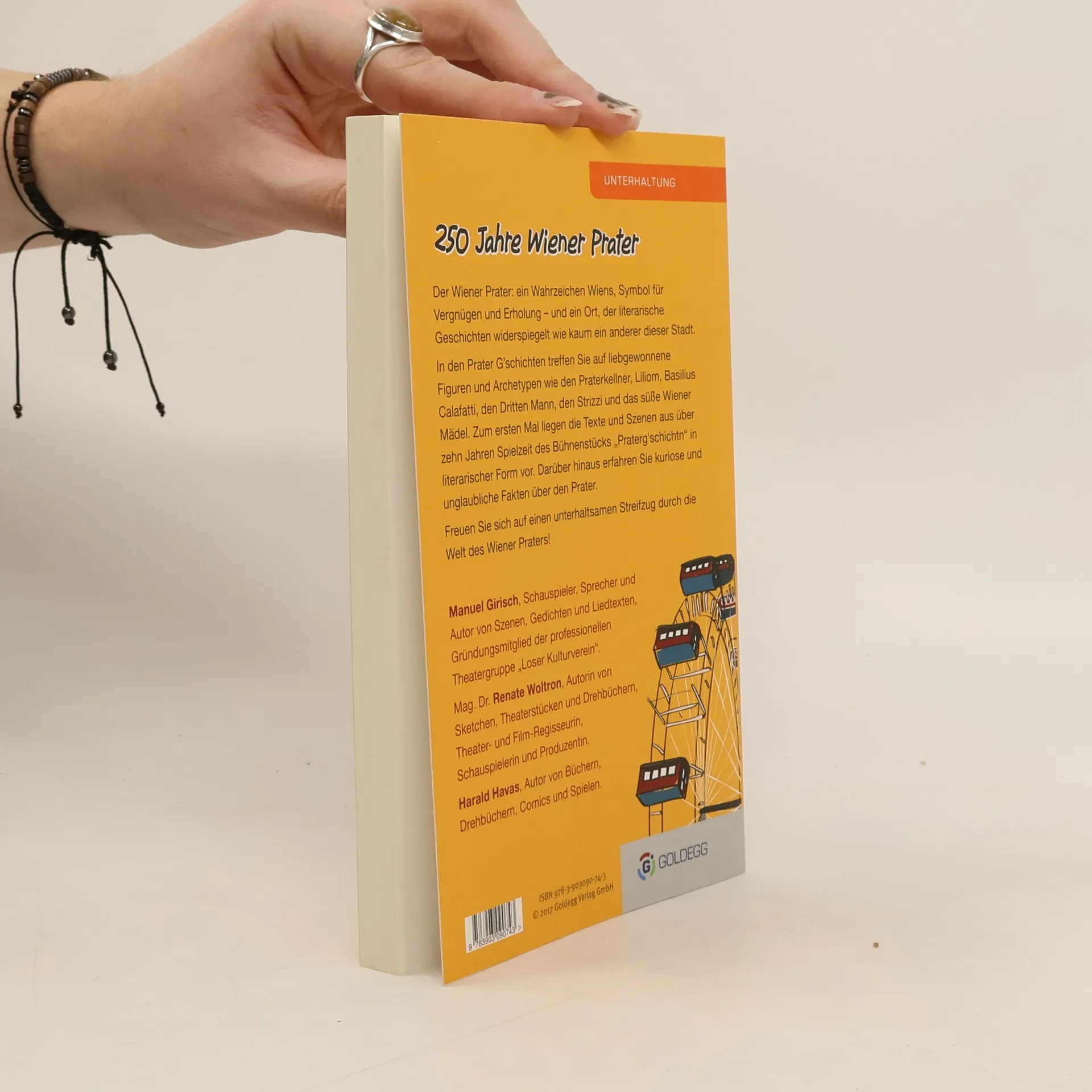 Der Wiener Prater: ein Wahrzeichen Wiens, Symbol für Vergnügen und Erholung – und ein Ort, der literarische Geschichten widerspiegelt wie kaum ein anderer dieser Stadt. Die „Praterg‘schichtn“ bieten seit zwölf Jahren ein musikkabarettistisches Potpourri, liebevoll eingebettet in Geschichten voller Esprit und Wortwitz. Die besten Sketche und Szenen finden Sie zum 250-Jahr-Jubiläum nun im Buch. Treffen Sie noch einmal liebgewonnene Figuren und Archetypen wie den Praterkellner, Liliom, Basilius Calafatti, den „Dritten Mann“, das süße Wiener Mädel, die Ausrufer, den Strizzi, die böhmische Köchin – und lernen Sie die Wiener von einer ganz anderen Seite kennen. Erleben Sie einen Streifzug durch die Welt des Wiener Praters und überzeugen Sie sich persönlich davon, dass im Prater noch immer die Bäume blüh‘n!