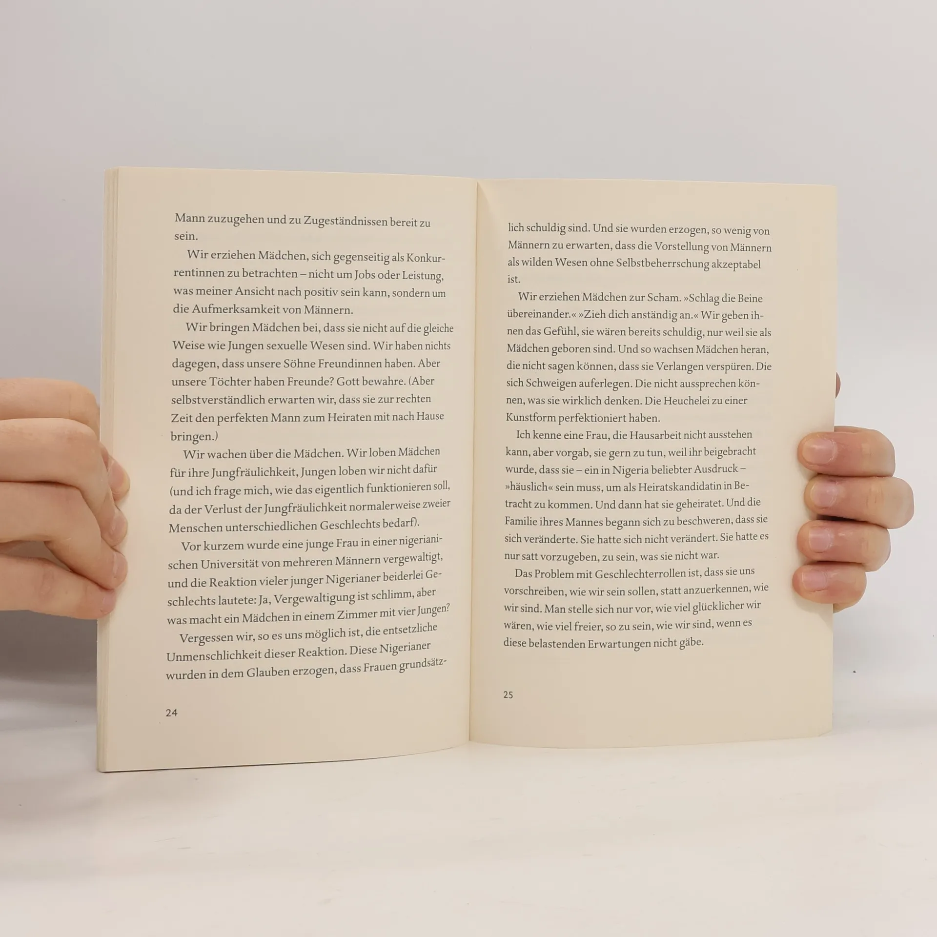 Mehr Feminismus! Der legendäre TED-Talk und vier neue Stories von Chimamanda Ngozi Adichie Die junge Bestsellerautorin Chimamanda Ngozi Adichie machte mit ihrem TED-Talk ›We Should All Be Feminists‹ (dt.: ›Mehr Feminismus!‹) Furore. Popsängerin Beyoncé Knowles sampelte einige Passagen daraus in ihrem Song ›Flawless‹. Mehr als 1,5 Millionen User sahen ihn im Netz, hier liegt er nun zum Nachlesen vor; gemeinsam mit vier neuen Stories, die Adichie einmal mehr als Erzählerin von Weltrang zeigen. Mit ihren Geschichten gelingt ihr, was nur große Literatur vermag: Minutiös legt sie das Innerste ihrer Figuren bloß und enthüllt damit Wahrheiten unserer Gesellschaft, die so offenkundig sind, dass wir sie kaum jemals durchschauen. Adichie erzählt davon, wie man Rollenerwartungen erlernt, und davon, wie man lernt, sie zu brechen. Sie erzählt von Schuld, Scham und Sexualität, von Feminismus, Liebe und Heimat. Über all ihren Geschichten liegt der helle Schimmer einer besseren, einer toleranteren Welt. Adichie ist eine hellwache Beobachterin unserer Zeit und ihre Stories sind eine literarische Offenbarung.