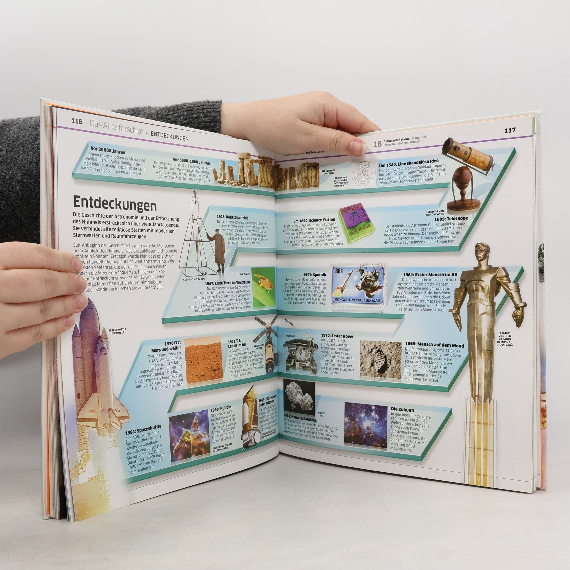 Wie entstehen Sterne? Was geschah beim Urknall? Ist unsere Erde im Vergleich zu anderen Himmelskörpern wirklich so klein? Diese und viele weitere spannende Fragen aus der gesamten Geschichte des Universums von den Planeten der Milchstraße über Schwarze Löcher bis hin zur modernen Raumfahrt veranschaulicht diese Buch mit Hilfe beeindruckender 3D-Abbildungen und faktenreicher Infografiken