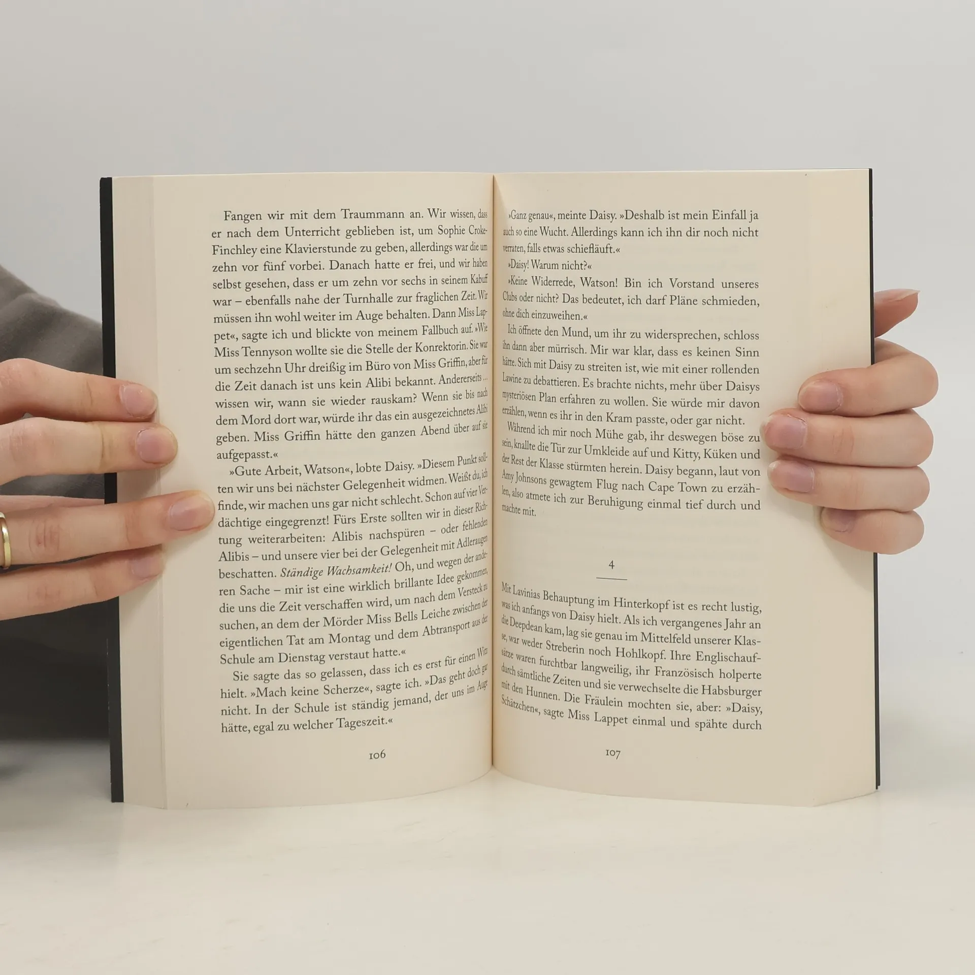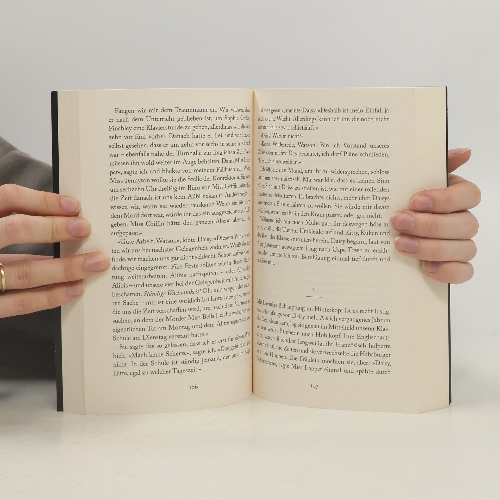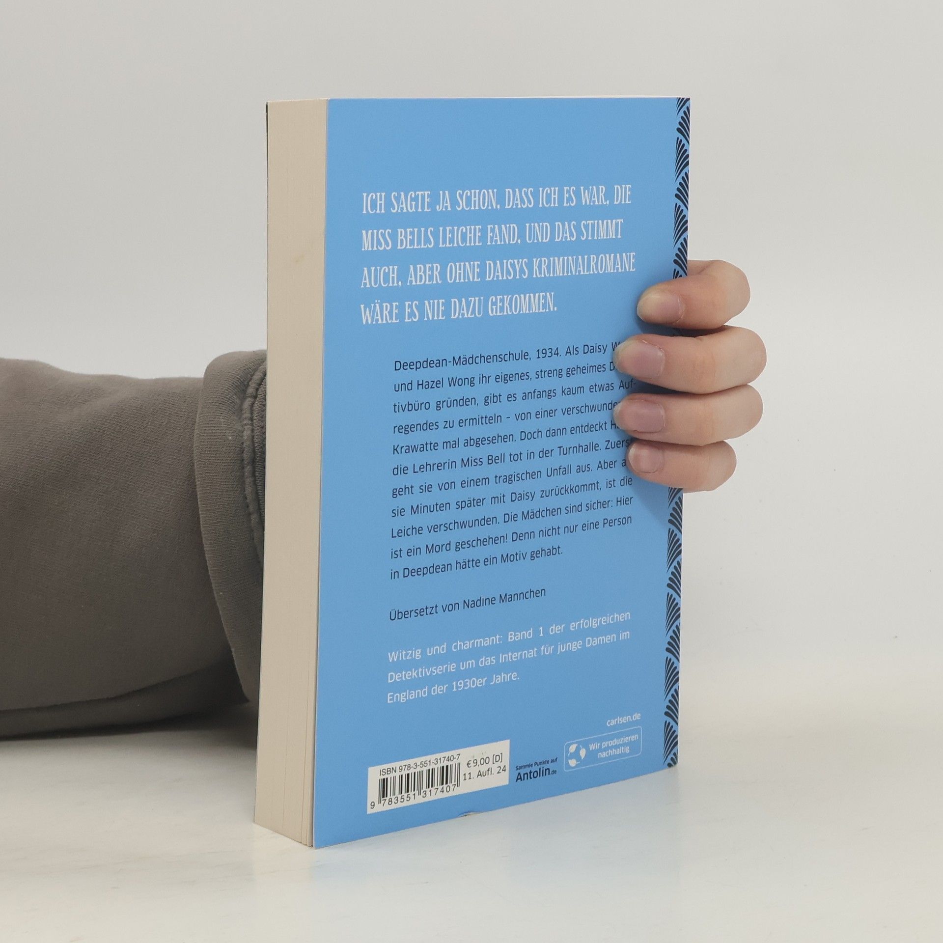 Deepdean-Mädchenschule, 1934. Als Daisy Wells und Hazel Wong ihr eigenes, streng geheimes Detektivbüro gründen, gibt es zuerst gar kein wirklich aufregendes Verbrechen zum Ermitteln. Doch dann entdeckt Hazel die Lehrerin Miss Bell tot in der Turnhalle. Zuerst denkt sie, es sei ein schrecklicher Unfall gewesen. Aber als Daisy und sie fünf Minuten später zurückkommen, ist die Leiche verschwunden. Jetzt sind die Mädchen sicher: Hier ist ein Mord geschehen! Und nicht nur eine Person in Deepdean hätte ein Motiv gehabt. --- Spannend, komisch, ungewöhnlich: Band 1 der Krimi-Serie „Ein Fall für Wells & Wong“ ---