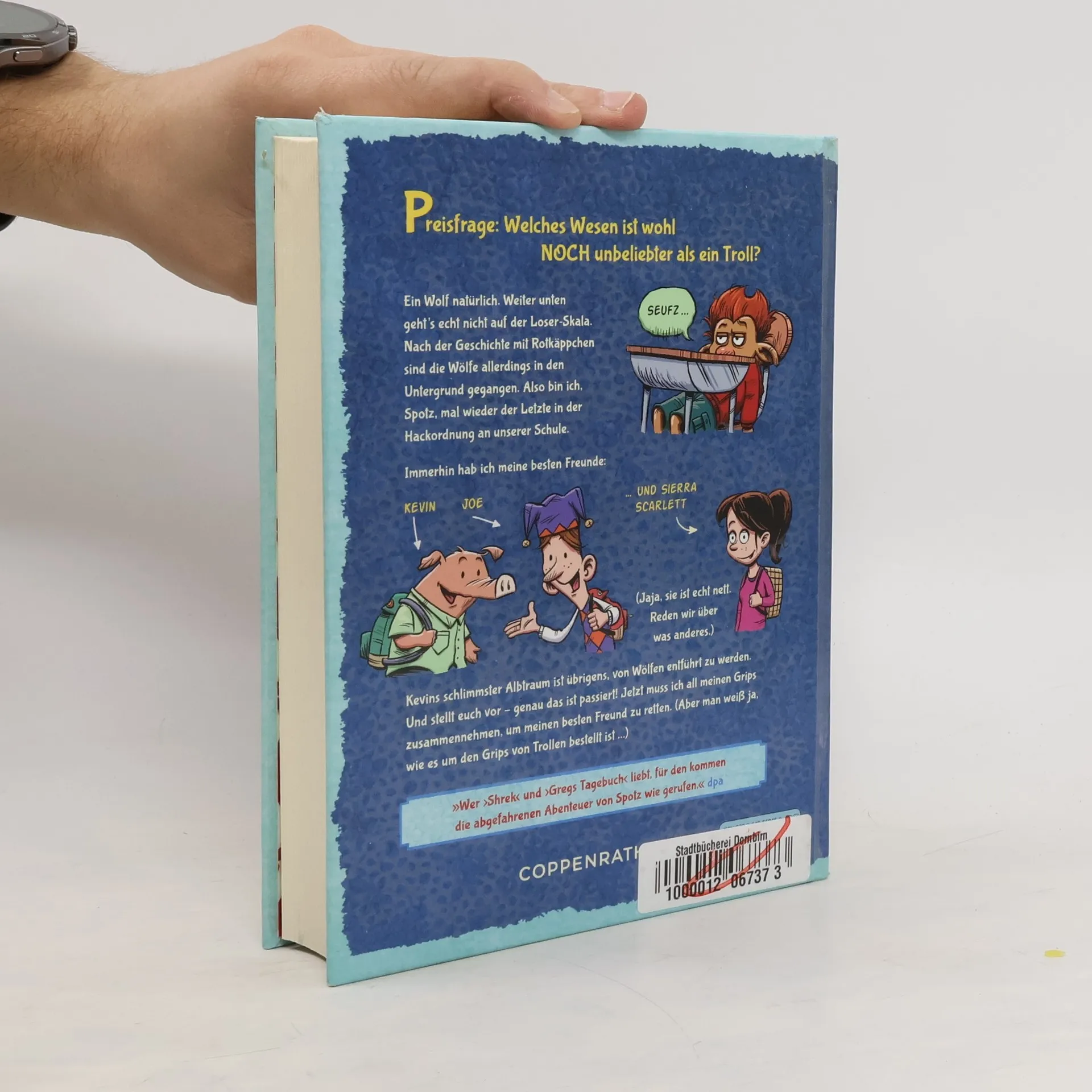 NOCH unbeliebter als Trolle sind im Königreich Niegelungen höchstens Wölfe. Nach der Geschichte mit Rotkäppchen sind sie allerdings in den Untergrund gegangen – und so ist Spotz als Troll der beliebteste Loser von allen. Immerhin halten seine beiden besten Freunde zu ihm, Kevin Kleinschwein und Joe K. Flintwater, der Sohn des Hofnarren. Doch dann wird Kevin entführt. Und die Wölfe schlagen zurück: Mit dem berüchtigten »Großen Bösen« an der Spitze fordern sie den Austausch der Geisel – gegen Rotkäppchens Tochter. Aber wer soll das sein? Spotz muss all seinen Grips zusammennehmen, um Kevin aus der Klemme zu helfen. (Und man weiß ja, wie es um den Grips von Trollen bestellt ist …)