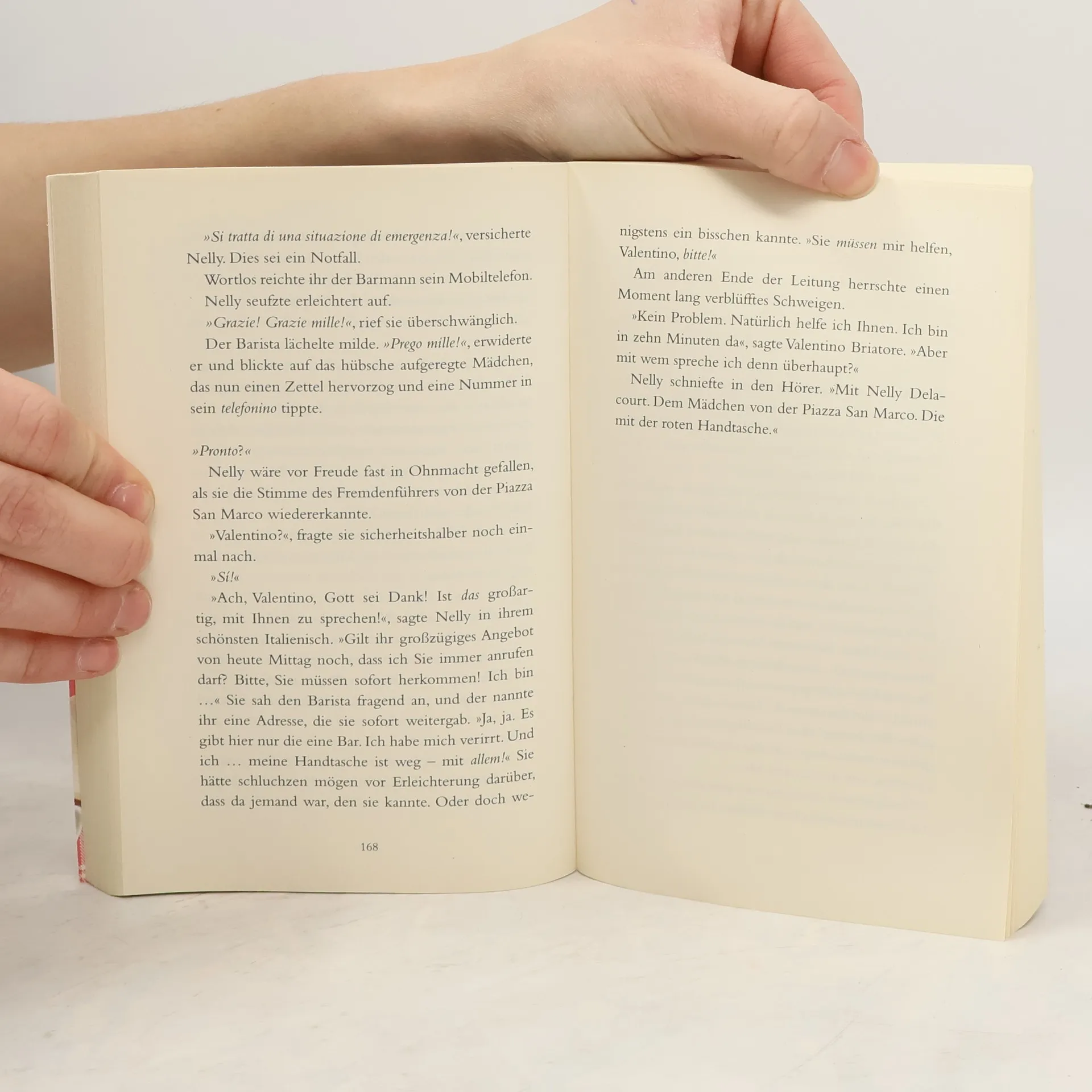 Nelly liebt das Lesen und die Langsamkeit, glaubt an Zeichen und ist unglücklich verliebt. Eines Tages begegnet ihr in einem alten Buch ein rätselhafter Satz – und kurz entschlossen tut sie, was sie nie für möglich gehalten hätte: Sie hebt all ihr Geld ab, kauft sich eine rote Handtasche und verlässt Hals über Kopf Paris, um der Spur des Buches nach Venedig zu folgen. Ihre Reise führt sie tief ins Herz der Lagunenstadt, die nicht nur die Begegnung mit einem charmanten Venezianer für sie bereithält, sondern auch ein zauberhaftes kleines Café, in dem Geheimnisse warten und Wunder möglich sind.
