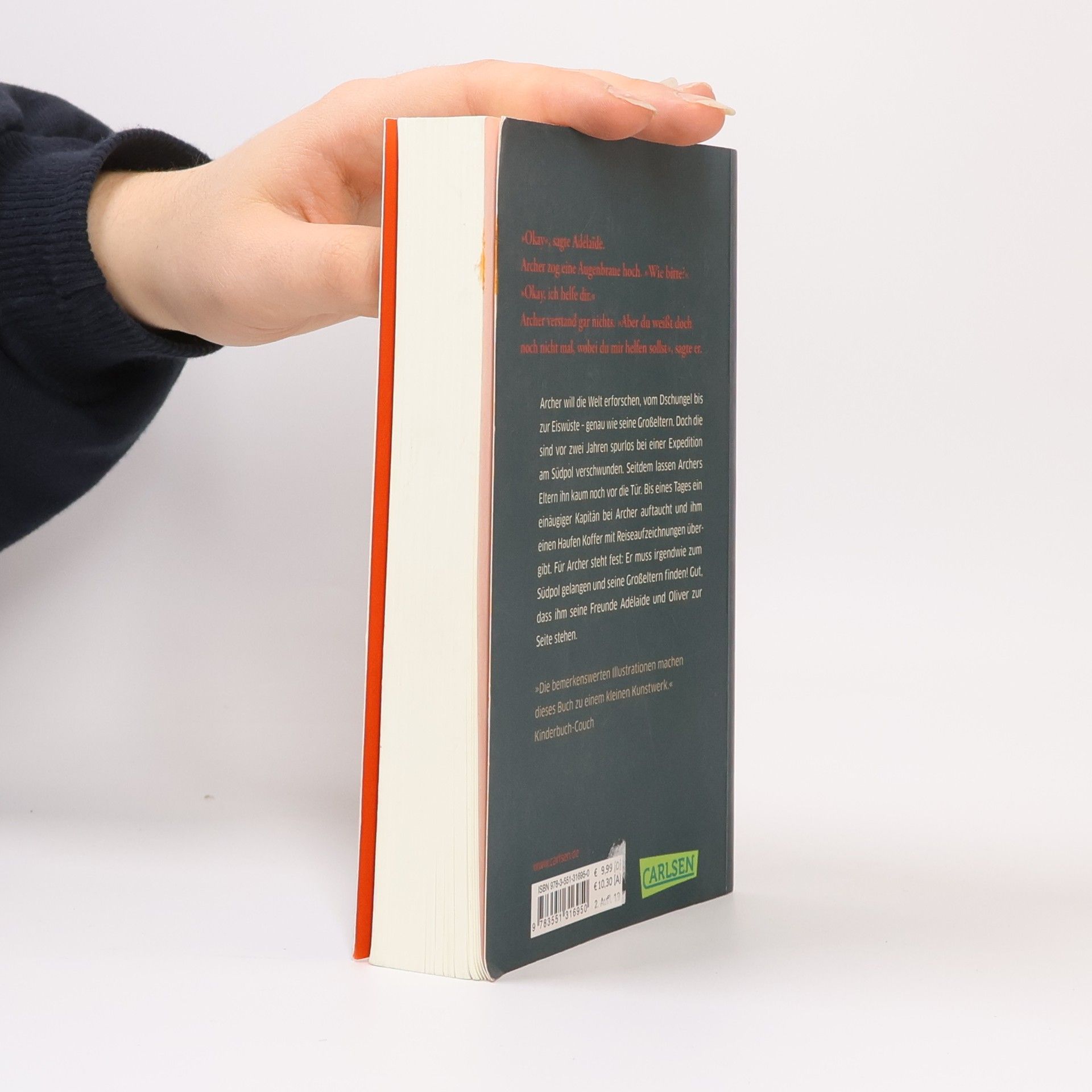 Archer will die Welt erforschen, vom Dschungel bis zur Eiswüste– genau wie seine Großeltern. Doch die sind vor zwei Jahren spurlos bei einer Expedition am Südpol verschwunden. Seitdem lassen Archers Eltern ihn kaum noch vor die Tür. Bis eines Tages ein einäugiger Kapitän bei Archer auftaucht und ihm einen Haufen Koffer mit Reiseaufzeichnungen übergibt. Für Archer steht fest: Er muss irgendwie zum Südpol gelangen und seine Großeltern finden! Gut, dass ihm seine Freunde Adélaïde und Oliver zur Seite stehen.