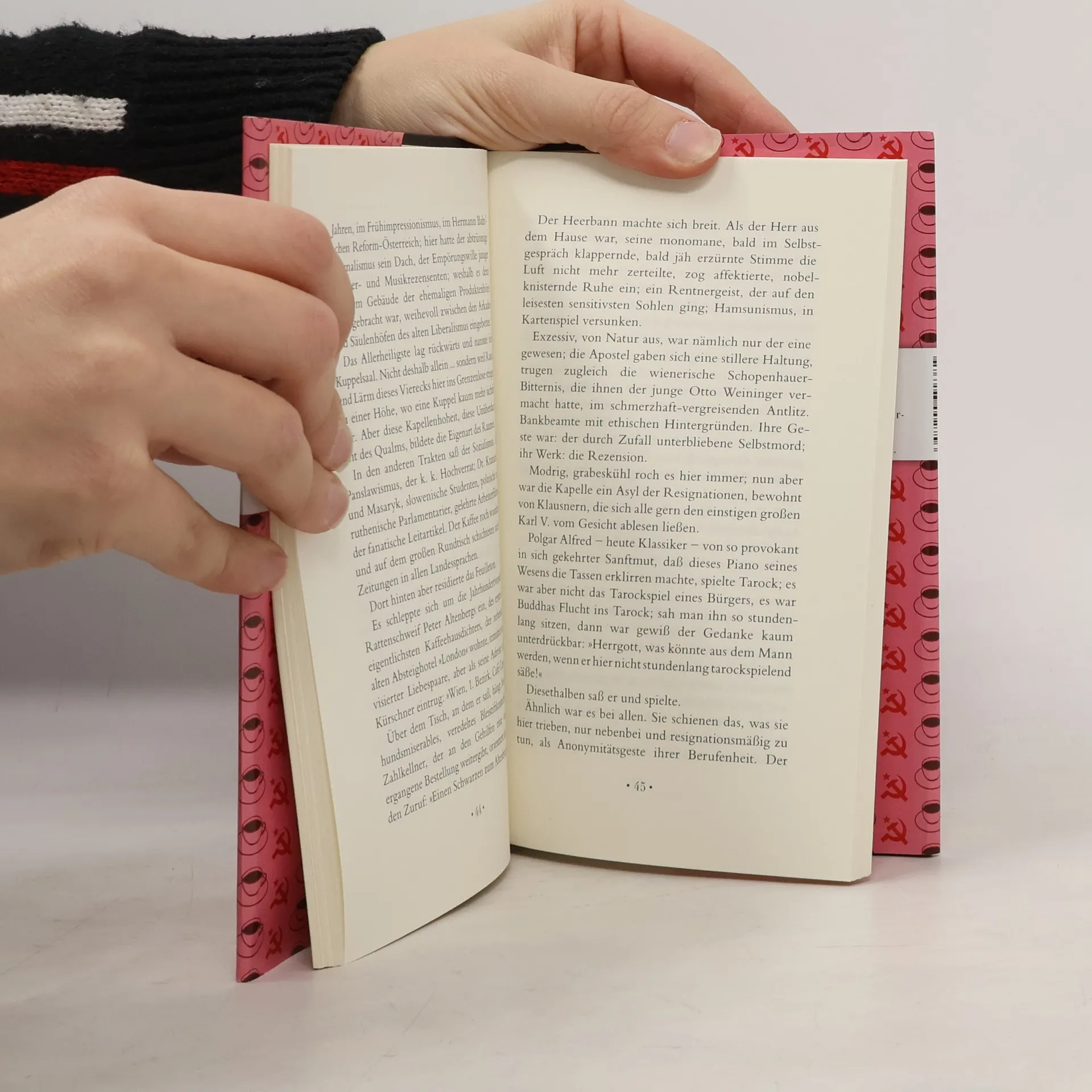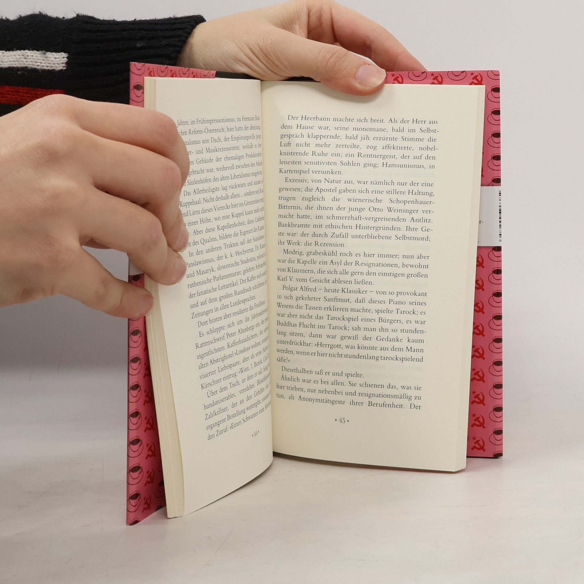 Das Gespenst von Demel 1919: zwischen je einer Portion Eiscreme und Torte sitzt der Lenin. Die vor Angst schlotternden Demel-Fräulein sind noch immer freundlich, ehrbar und würdig wie Schwestern eines adeligen Damenstifts. Und die Oberen Hundert? Parlieren weiter in der ihnen eigenen Sprache: das Negligé im Tonfall; die Zunge legt sich faul zurück wie in einen Klubfauteuil, die Vokale enthalten eine kleine Parfum-Injektion Langeweile, die „r“ werden von der Gaumenplatte aufgepickt wie Krumen einer delikaten Torte …