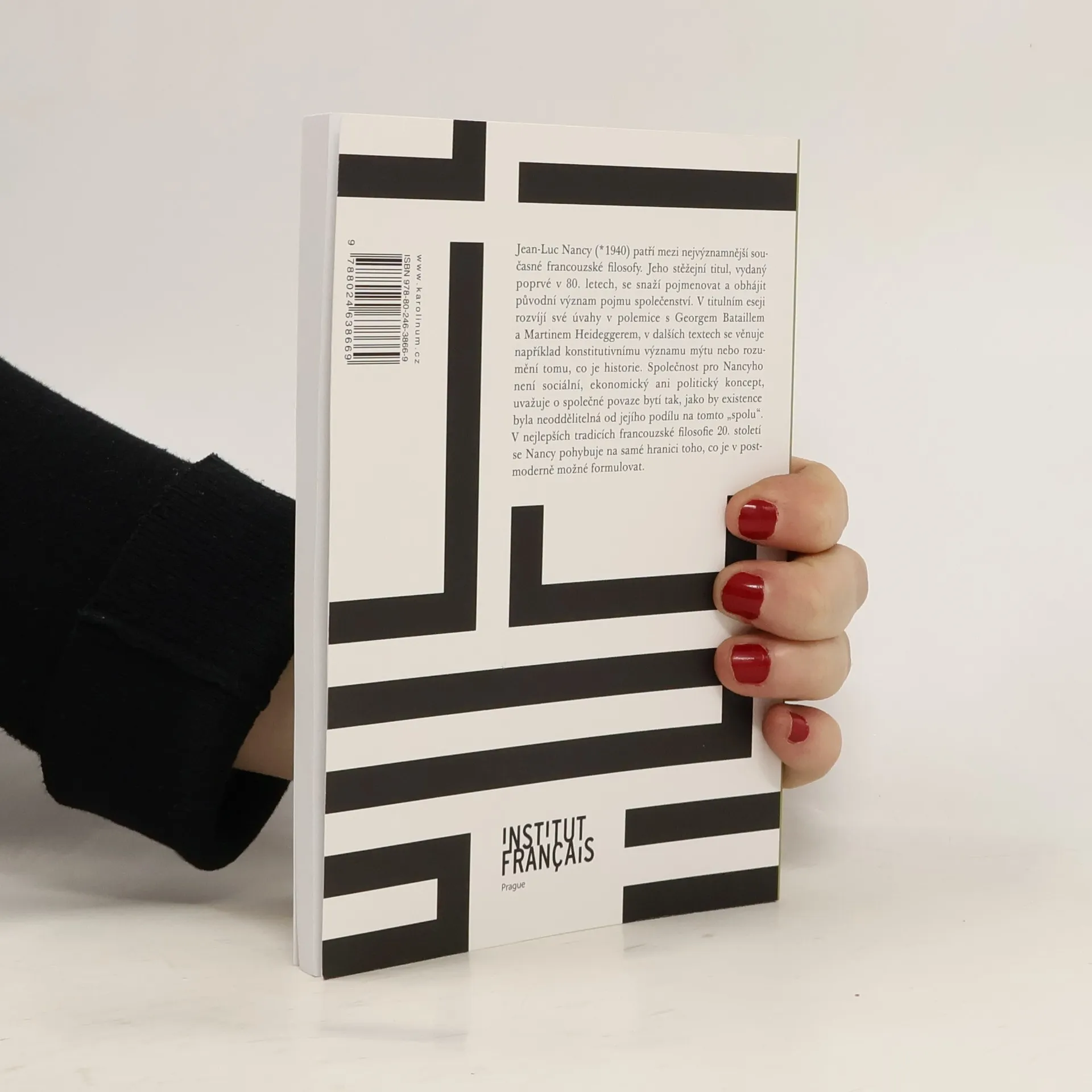 Jean-Luc Nancy (* 1940) patří mezi nejvýznamnější současné francouzské filosofy. Jeho stěžejní titul, vydaný poprvé v 80. letech, se snaží pojmenovat a obhájit původní význam pojmu, z něhož se v moderní společnosti stal jen svazek mezi na sobě nezávislými jedinci. V titulním eseji rozvíjí své úvahy v polemice s Georgem Bataillem a Martinem Heideggerem, v dalších textech se věnuje například konstitutivnímu významu mýtu nebo tomu, co je historie. Společnost pro Nancyho není sociální, ekonomický ani politický koncept, uvažuje o společné povaze bytí tak, jako by existence byla neoddělitelná od jejího podílu na tomto „spolu“. V nejlepších tradicích francouzské filosofie 20. století se Nancy pohybuje na samé hranici toho, co je v postmoderně možné formulovat.