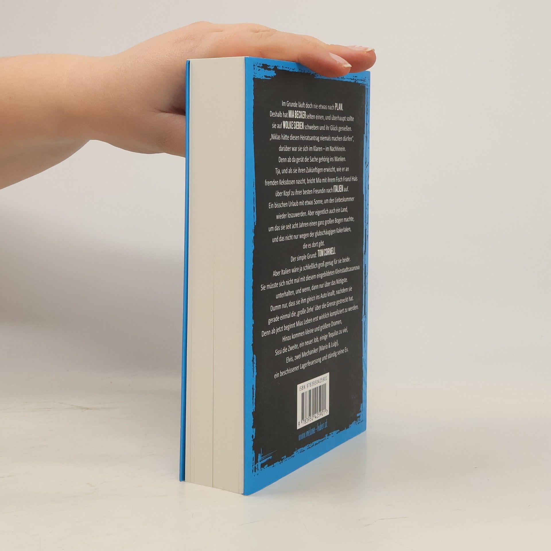 Im Grunde läuft doch nie etwas nach Plan ... Deshalb hat MIA BECKER selten einen, und überhaupt sollte sie auf WOLKE 7 schweben und ihr Glück genießen. „Niklas hätte diesen Heiratsantrag niemals machen dürfen“, darüber war sie sich im Klaren – im Nachhinein. Denn ab da gerät die Sache gehörig ins Wanken. Tja, und als sie ihren Zukünftigen erwischt, wie er an fremden Keksdosen nascht, bricht Mia mit ihrem Fisch Franzl Hals über Kopf zu ihrer besten Freundin nach ITALIEN auf. Ein bisschen Urlaub mit etwas Sonne, um den Liebeskummer wieder loszuwerden. Aber eigentlich auch ein Land, um das sie seit acht Jahren einen ganz großen Bogen machte, und das nicht nur wegen der glubschäugigen Kakerlaken, die es dort gibt. Der simple Grund: TOM CORNELI. Aber Italien wäre ja schließlich groß genug für sie beide. Sie müsste sich nicht mal mit diesem eingebildeten Kleinstadtcasanova unterhalten, und wenn, dann nur über das Nötigste. Dumm nur, dass sie ihm gleich ins Auto knallt, nachdem sie gerade einmal die ‚große Zehe‘ über die Grenze gestreckt hat. Denn ab jetzt beginnt Mias Leben erst wirklich kompliziert zu werden. Hinzu kommen kleine und größere Dramen, Sissi die Zweite, ein neuer Job, einige Tequilas zu viel, Elvis, zwei Mechaniker (Mario & Luigi), ein beschissener Lagerfeuersong und ständig seine Ex.