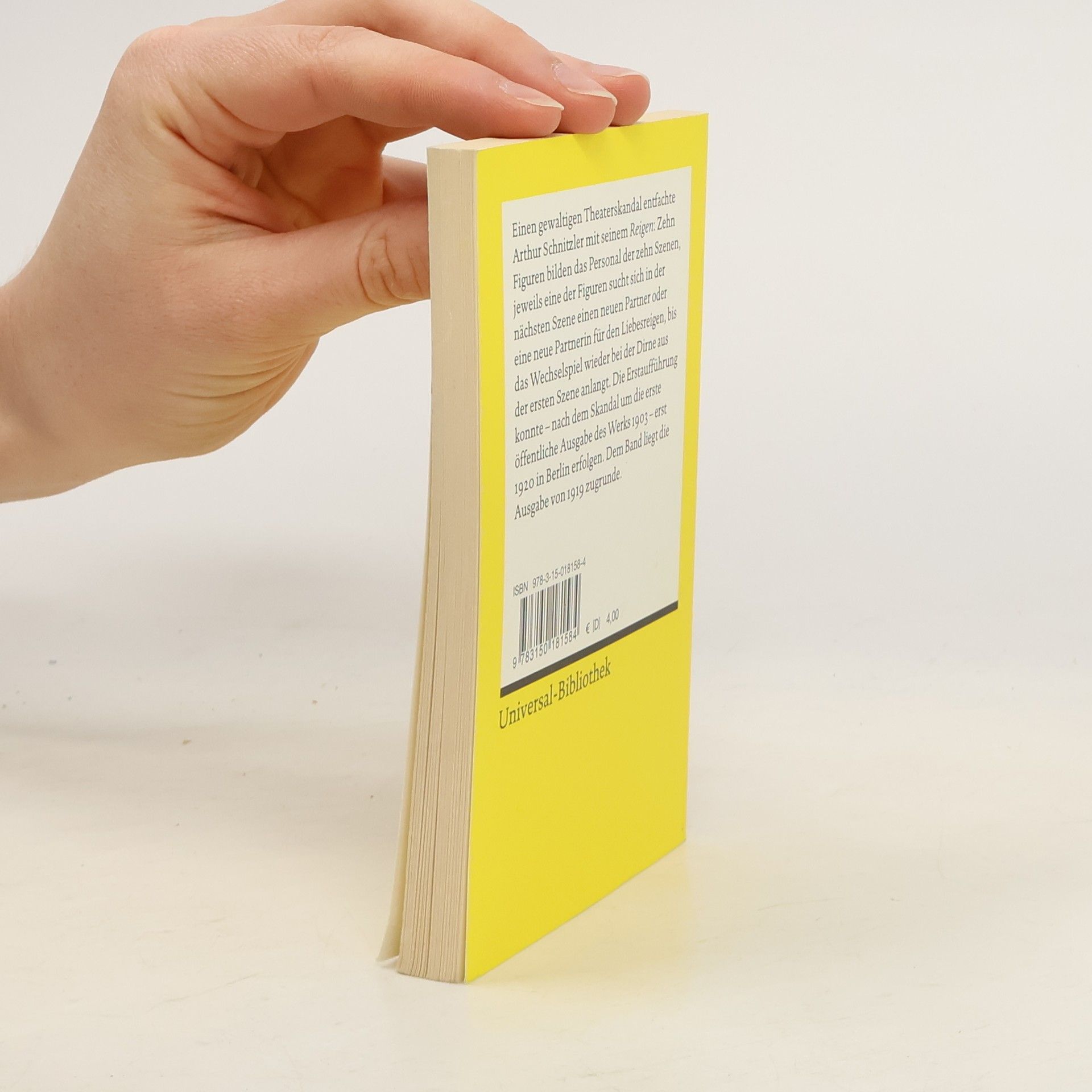 „Ein Erscheinen der nachfolgenden Szenen ist vorläufig ausgeschlossen“, schrieb Schnitzler selbst über seine Komödie. Tatsächlich: Die Erstausgabe (1903) löste eine Welle der Empörung aus. Die Erstauffühung (1920) wurde durch gelenkte Demonstrationen gestört; weitere Aufführungen wurden verboten, zwei Schauspieler wegen 'Unzucht' angezeigt. - Jetzt gibt´s Schnitzlers Skandalstück für jedermann in der Universal-Bibliothek.
