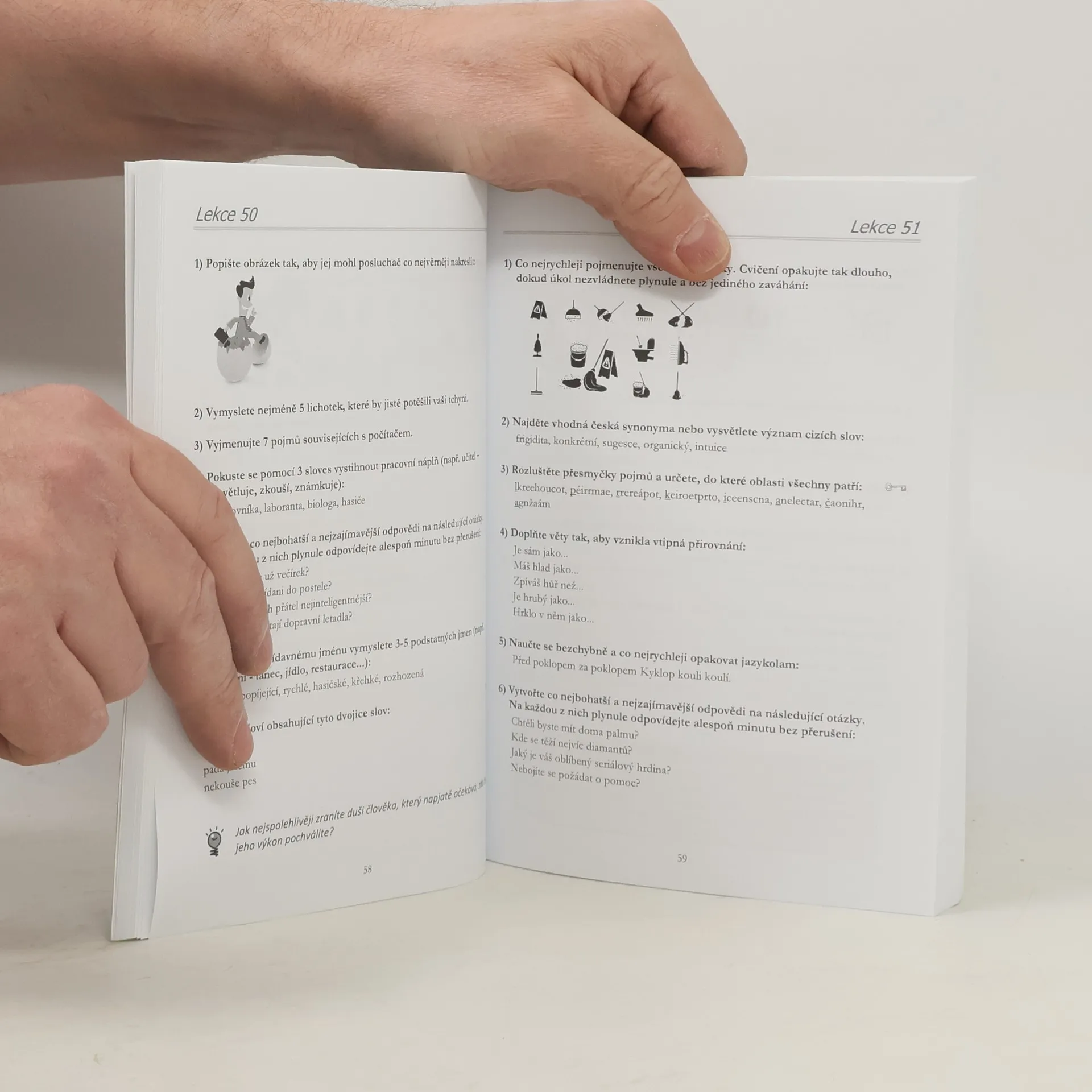 Nové vydání úspěšné knihy Mluvte jako mluvčí přináší Vám, čtenářům, desítky nových druhů originálních cvičení zaměřených na zlepšení mluveného projevu. Pravidelným tréninkem s knihou brzy rozšíříte svou aktivní slovní zásobu v rodném jazyce a zdokonalíte své vyjadřovací i artikulační schopnosti. Naučíte se rychleji vymýšlet konverzační témata v každodenních rozhovorech a debatách nebo lépe obhajovat svůj názor při sporných diskuzích. Pomocí snadno zapamatovatelných a lehce aplikovatelných rétorických rad navíc zjistíte: jak působit obratněji ve společnosti jak získávat pozornost opačného pohlaví jak přesvědčovat druhé a mnoho dalšího. Praktická část knihy je rozdělena do 200 lekcí, z nichž každá nabízí 30 minut intenzivního řečnického tréninku za pomoci 5-7 zajímavých cvičení. Pro své praktické zaměření bývá kniha doporučována jako doplňková literatura v seminářích rétoriky nebo využívána v medicíně jako terapeutická pomůcka při odstraňování řečových vad (ať už vrozených nebo získaných následkem mozkových příhod a jiných vážných onemocnění). Hlavní uplatnění však najde u každého člověka, který občas cítí, že jeho mluvený projev není tak kvalitní, jak by si přál, jeho řeč není tak plynulá a srozumitelná, jak by mohla být či jeho vyjádření vždy nebývají dostatečně výstižná a všem jasná.