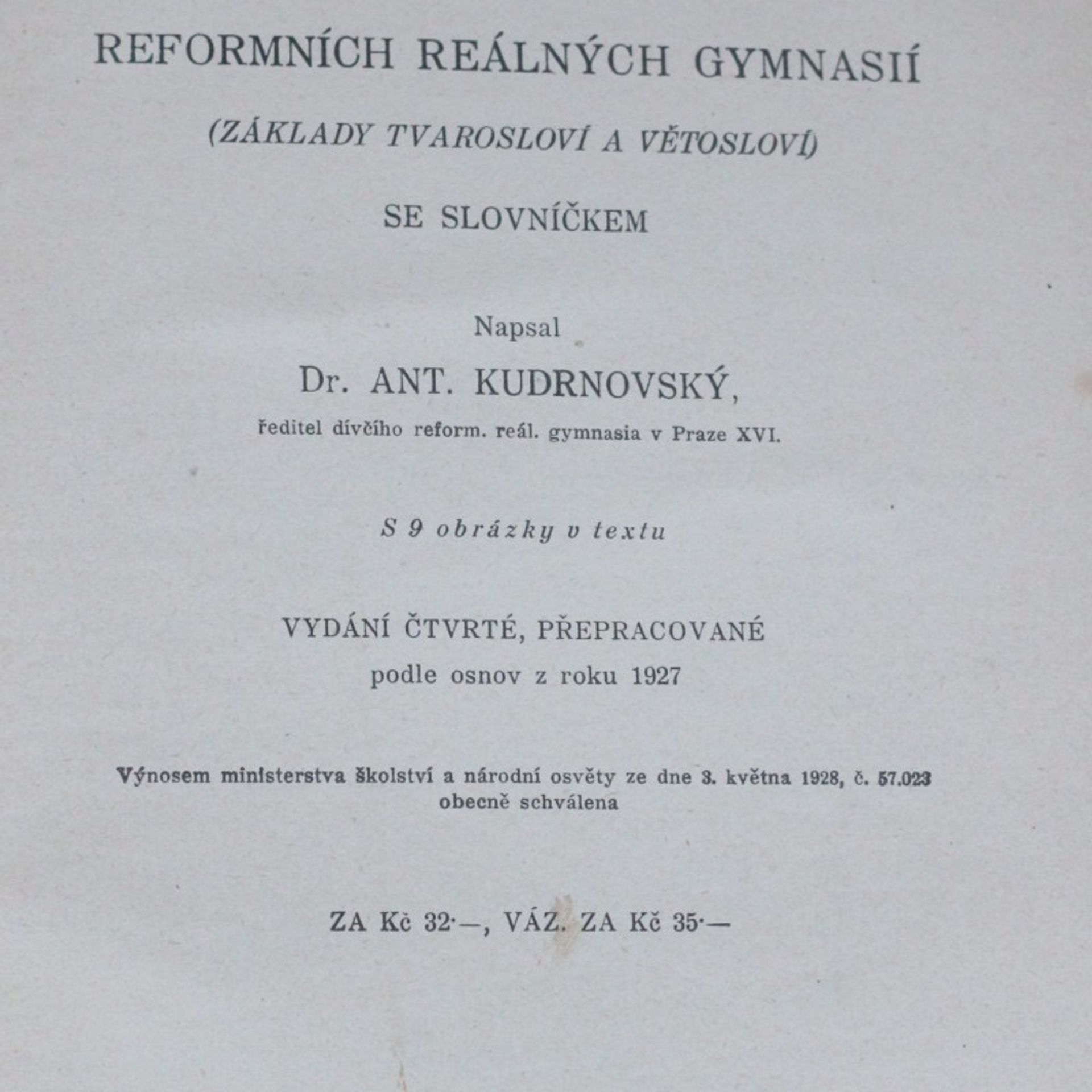 Cvičebnice jazyka latinského pro pátou a šestou třídu reformních reálných gymnasií : [Základy tvarosloví a větosloví], Kudrnovský Antonín