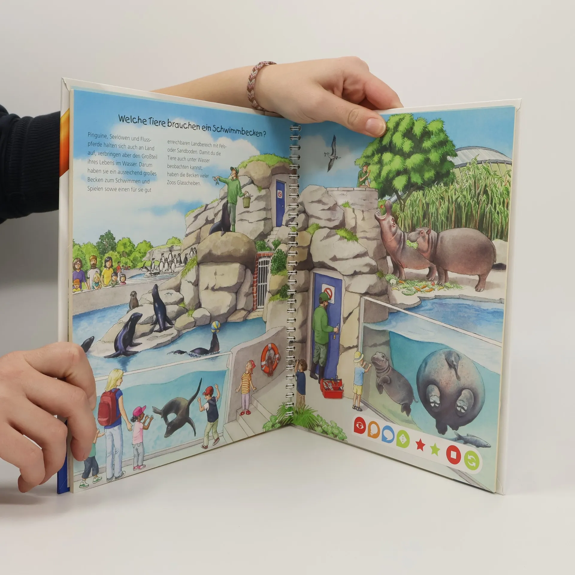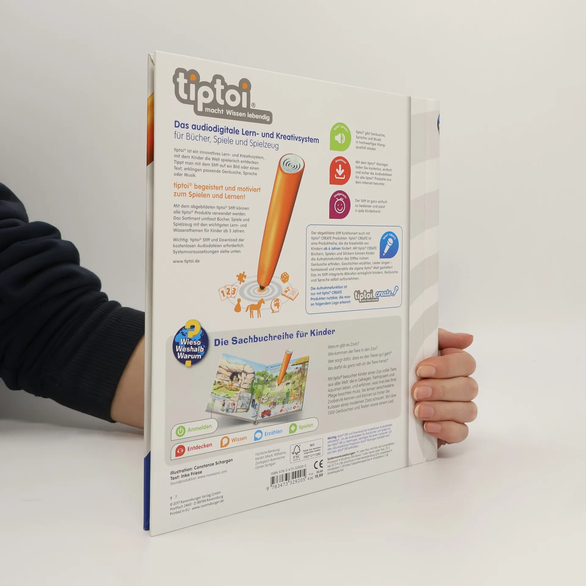 Willkommen im Zoo! Alle Kinder gehen gern in den Zoo. Sie lieben es, Tiere zu beobachten und haben viele Fragen: Wie kommen die Tiere in den Zoo? Was fressen sie? Und wie viel Platz brauchen sie? Bei einem Spaziergang durch Gehege, Tierhäuser und ein großes Aquarium lernen Kinder unzählige Tierarten sowie Berufe wie Tierpfleger, Zoodirektor, Tierarzt und Techniker kennen. Dabei sensibilisiert das Buch auch für eine artgerechte Haltung. Was macht der Traktor auf dem Feld? Wann kommt die Feuerwehr? Wie groß wird ein Pony? Die interaktive Sachbuchreihe tiptoi Wieso? Weshalb? Warum? beantwortet wichtige Kinderfragen auf Augenhöhe. Auf den liebevoll illustrierten Seiten tauchen die Kinder in eine Welt ein, die durch zahlreiche authentische Geräusche lebendig wird. Das Sachwissen wird altersgerecht erklärt und ist fachlich geprüft. Die Kinder können sich dank der einfachen und intuitiven Nutzung mit dem tiptoi-Stift das Wissen selbst erschließen. Sie lernen, Zusammenhänge zu begreifen und erfahren spannende Informationen über ihren Alltag und ihre Umwelt. Tolle Geschichten, Lieder und unterhaltsame Spiele laden dabei immer wieder zum selbstständigen Entdecken und Erforschen ein. tiptoi-Stift nicht enthalten. Muss separat erworben werden.