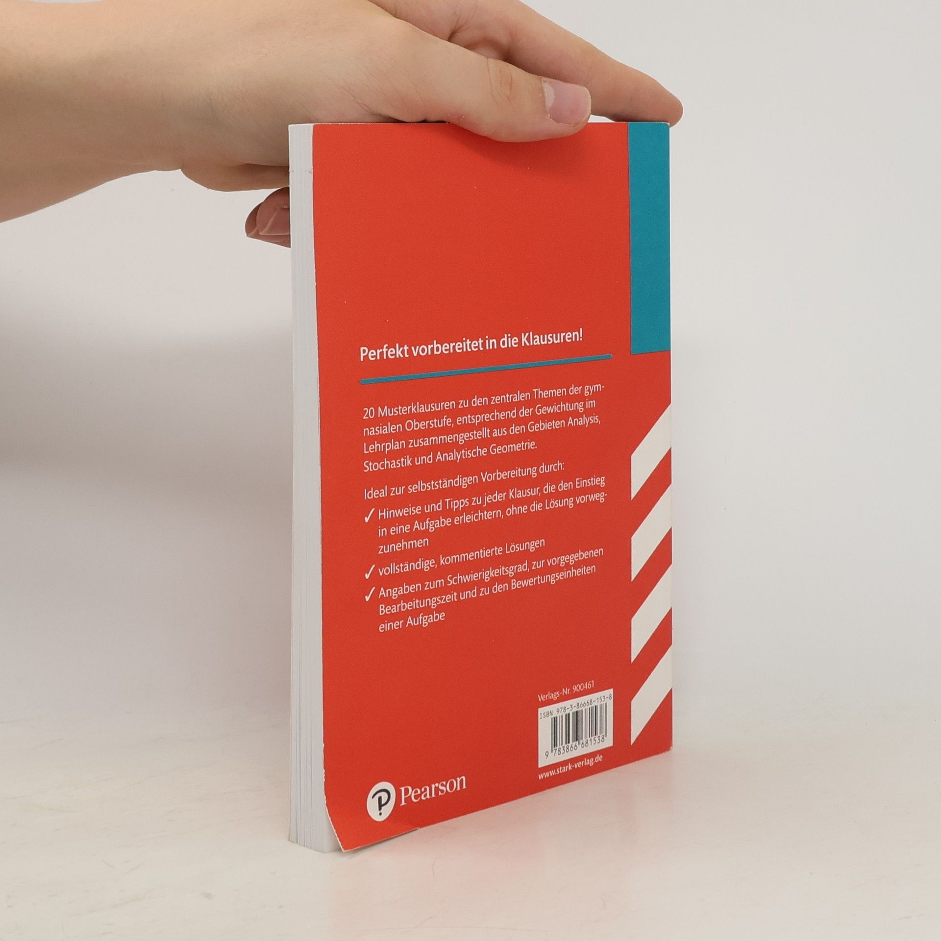 Klausuren Gymnasium – Mathematik Oberstufe Zwanzig Musterklausuren aus den Gebieten Analysis, Stochastik und Analytische Geometrie, passend zusammengestellt für die Oberstufe am Gymnasium. Ideal zur selbstständigen Vorbereitung auf Klausuren. Hinweise und Tipps zu jeder Klausur, die den Einstieg in eine Aufgabe erleichtern, ohne die Lösung vorwegzunehmen Mit vollständigen, kommentierten Lösungen zu allen Aufgaben Angaben zum Schwierigkeitsgrad, zur vorgegebenen Bearbeitungszeit und zu den Bewertungseinheiten einer Aufgabe