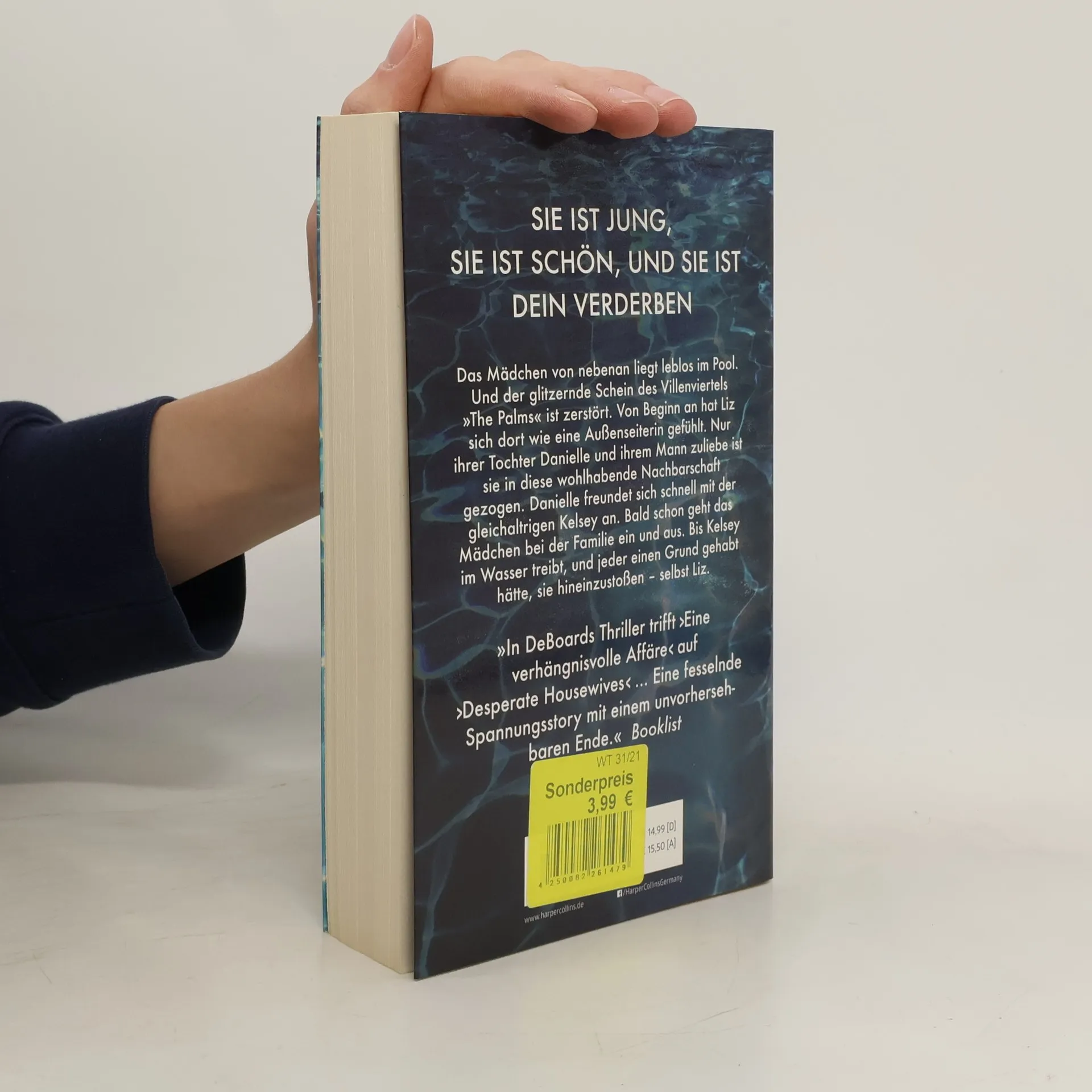 Das Mädchen von nebenan liegt leblos im Pool. Und der glitzernde Schein des Villenviertels „The Palms“ ist zerstört. Von Beginn an hat Liz sich dort wie eine Außenseiterin gefühlt. Nur ihrer Tochter Danielle und ihrem Mann zuliebe ist sie in diese wohlhabende Nachbarschaft gezogen. Danielle freundete sich schnell mit der gleichaltrigen Kelsey an. Bald schon ging das Mädchen bei der Familie ein und aus. Bis sie im Wasser treibt, und jeder einen Grund gehabt hätte sie hineinzustoßen - selbst Liz. „In DeBoards neuestem Thriller trifft “Eine verhängnisvolle Affäre„ auf “Desperate Housewives„ ... Eine fesselnde Spannungsstory mit einem unvorhersehbaren Ende.“ - Booklist „Von Beginn an düster und unheilvoll hat mich der Roman ehrfürchtig zurückgelassen. Das Buch zeigt, was für eine brillante Autorin Paula Treick DeBoard ist. Faszinierend“ - New York Times-Bestsellerautorin Mary Kubica