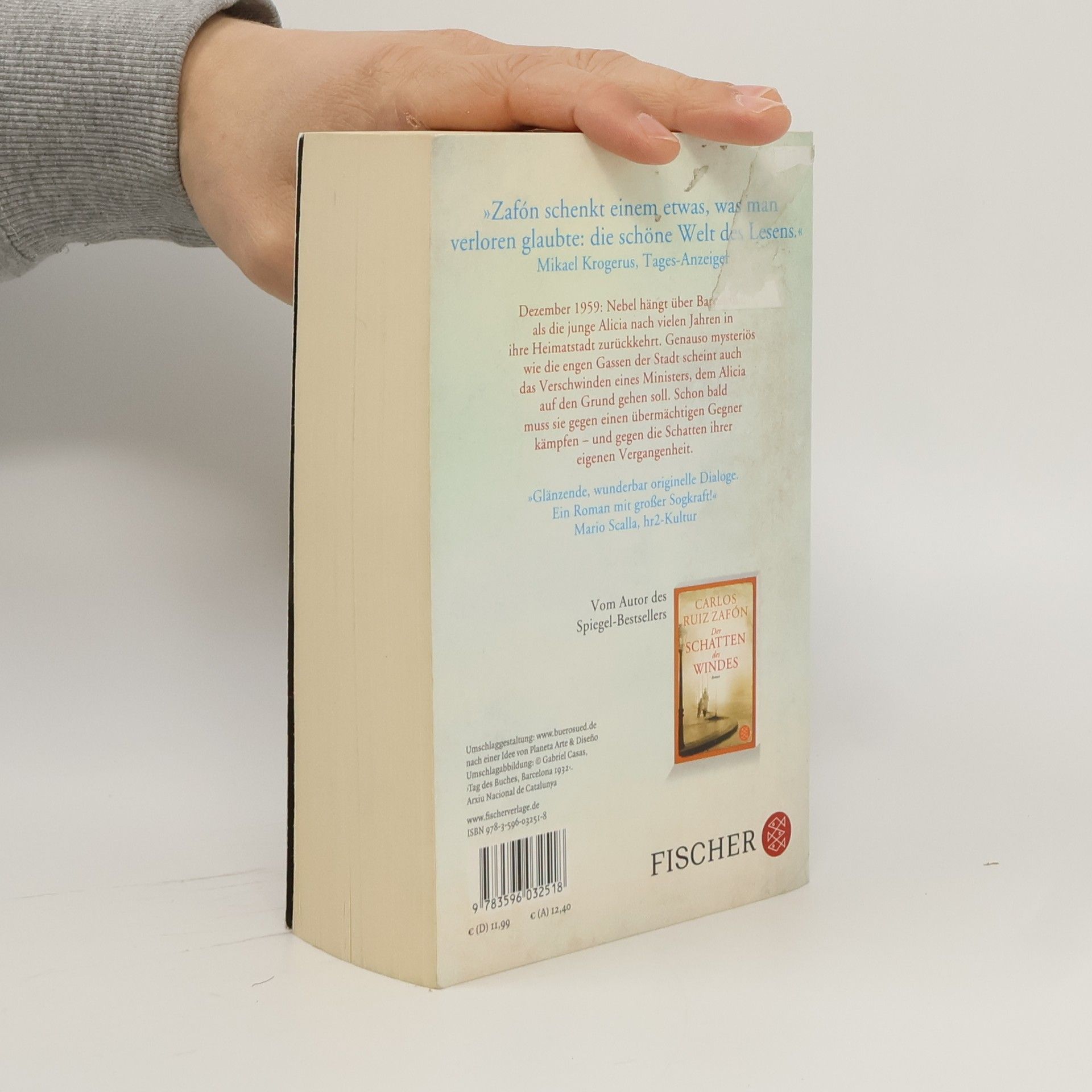 Spanien in den dunklen Tagen des Franco-Regimes: Ein Auftrag der Politischen Polizei führt die eigenwillige Alicia Gris von Madrid zurück in ihre Heimatstadt Barcelona. Unter größter Geheimhaltung soll sie das plötzliche Verschwinden des zwielichtigen Ministers Mauricio Valls aufklären, dessen dunkle Vergangenheit als Direktor des Gefängnisses von Montjuïc ihn nun einzuholen scheint. In seinem Besitz befand sich ein geheimnisvolles Buch aus der Serie Das Labyrinth der Lichter, das Alicia auf schmerzliche Weise an ihr eigenes Schicksal erinnert. Es führt sie in die Buchhandlung Sempere & Söhne, tief in Barcelonas Herz. Der Zauber dieses Ortes nimmt sie gefangen, und wie durch einen Nebel steigen Bilder ihrer Kindheit in ihr auf. Doch die Antworten, die Alicia findet, öffnen die Tür zu einer finsteren Intrige und bringen all jene in Gefahr, die Alicia am meisten liebt.