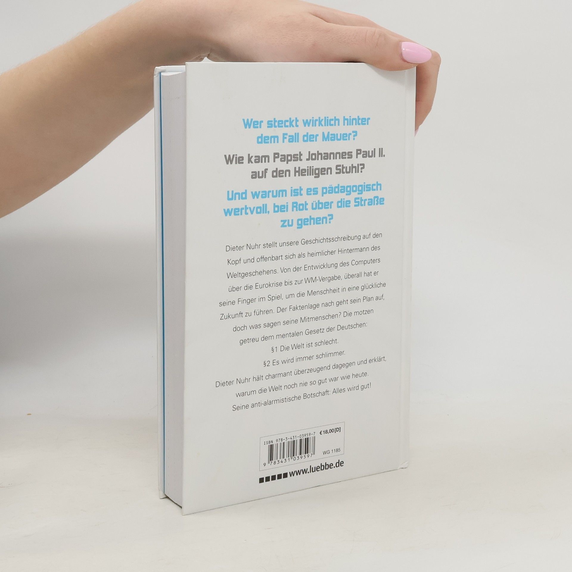 Wer steckt wirklich hinter dem Fall der Mauer? Wie kam Papst Johannes Paul II. auf den Heiligen Stuhl? Und warum ist es pädagogisch wertvoll, bei Rot über die Straße zu gehen? Dieter Nuhr stellt unsere Geschichtsschreibung auf den Kopf und offenbart sich als heimlicher Hintermann des Weltgeschehens. Von der Entwicklung des Computers über die Eurokrise bis zur WM-Vergabe, überall hat er seine Finger im Spiel, um die Menschheit in eine glückliche Zukunft zu führen. Der Faktenlage nach geht sein Plan auf, doch was sagen seine Mitmenschen? Die motzen getreu dem mentalen Gesetz der Deutschen: §1 Die Welt ist schlecht. §2 Es wird immer schlimmer. Dieter Nuhr hält charmant überzeugend dagegen und erklärt, warum die Welt noch nie so gut war wie heute. Seine anti-alarmistische Botschaft: Alles wird gut! Der Bestseller-Autor Dieter Nuhr schreibt die erstaunlichste Autobiografie aller Zeiten.