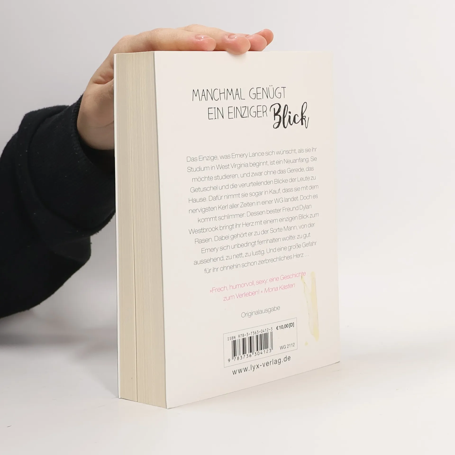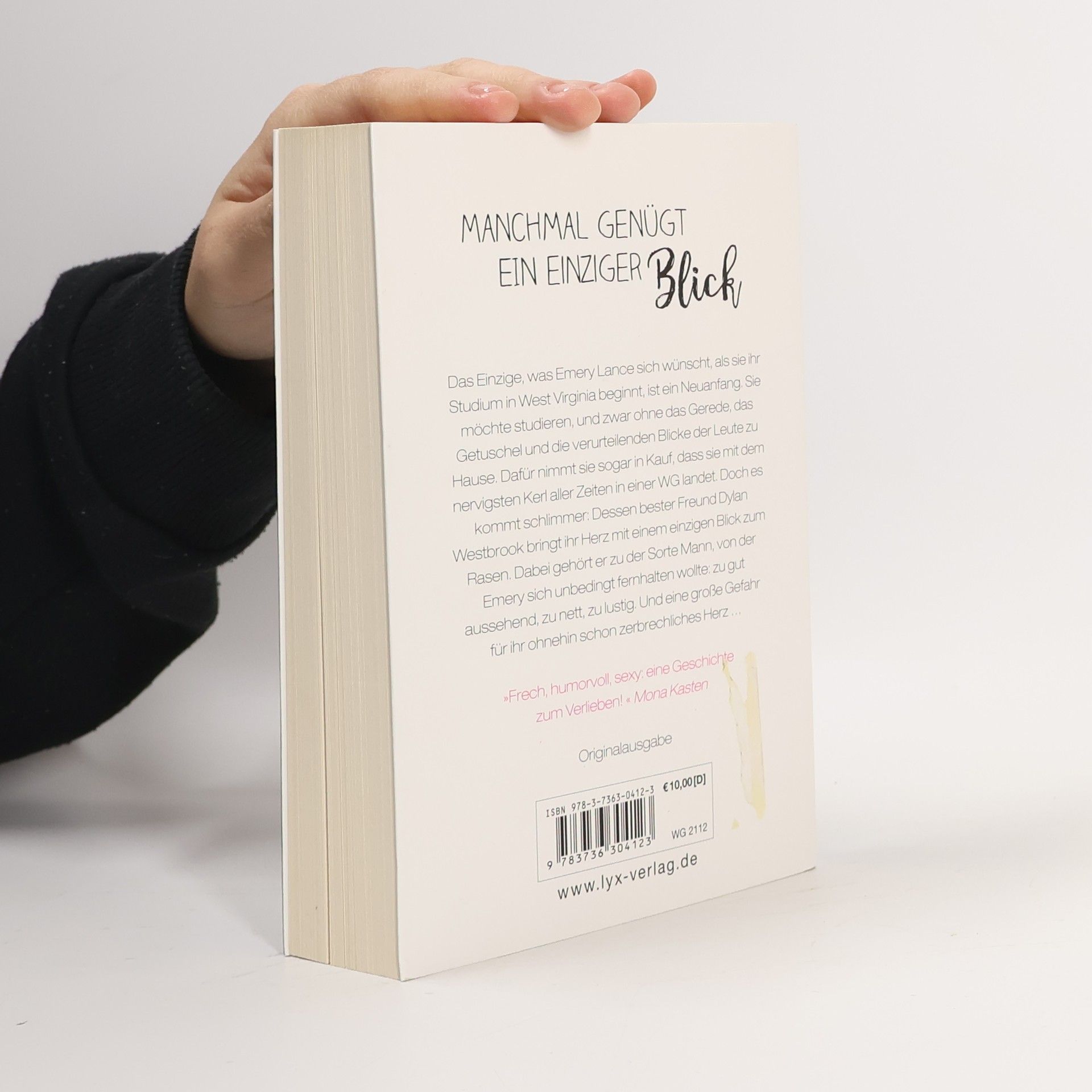 Manchmal genügt ein einziger Blick ... Das Einzige, was Emery Lance sich wünscht, als sie ihr Studium in West Virginia beginnt, ist ein Neuanfang. Sie möchte studieren, und zwar ohne das Gerede, das Getuschel und die verurteilenden Blicke der Leute zu Hause. Dafür nimmt sie sogar in Kauf, dass sie mit dem nervigsten Kerl aller Zeiten in einer WG landet. Doch es kommt schlimmer: Dessen bester Freund Dylan Westbrook bringt ihr Herz mit einem einzigen Blick zum Rasen. Dabei gehört er zu der Sorte Mann, von der Emery sich unbedingt fernhalten wollte: zu gut aussehend, zu nett, zu lustig. Und eine große Gefahr für ihr ohnehin schon zerbrechliches Herz ...