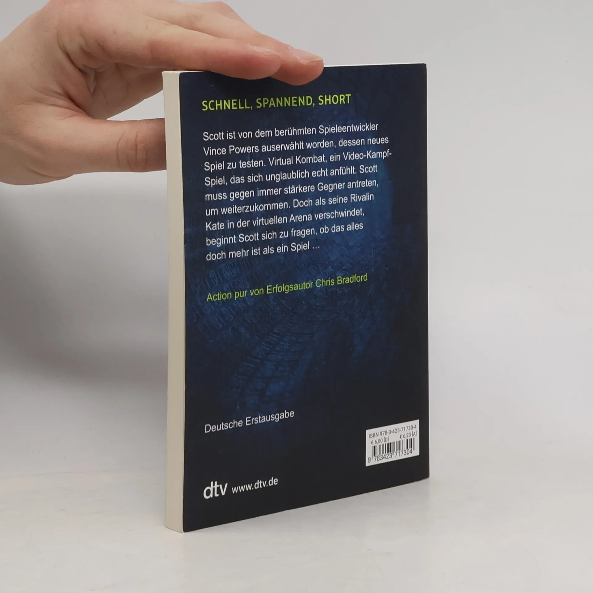 Schnell, spannend, short – dtv shorts! Scott ist von dem berühmten Spieleentwickler Vince Powers auserwählt worden, dessen neues Spiel zu testen. Virtual Kombat, ein Video-Kampf-Spiel, das sich unglaublich echt anfühlt. Sobald die Spieler die Kampfwelt betreten, können sie nicht mehr zwischen der realen und der virtuellen Welt unterscheiden. Scott muss gegen immer stärkere Gegner antreten, um weiterzukommen. Doch als seine Rivalin Kate in der virtuellen Arena verschwindet, beginnt Scott sich zu fragen, ob das alles doch mehr ist, als ein Spiel …
