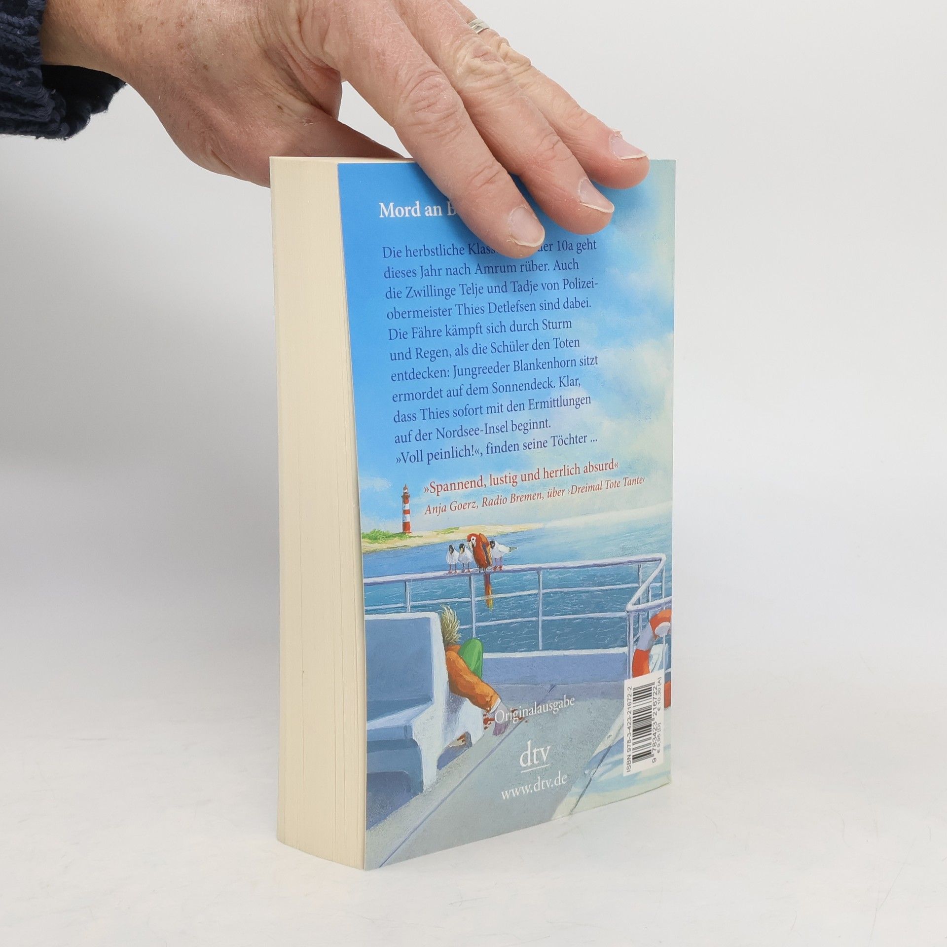 Schräg, skurril, liebenswert und typisch norddeutsch Thies Detlefsens Zwillinge Telje und Tadje setzen mit der 10a des Theodor-Storm-Gymnasiums zur herbstlichen Klassenfahrt nach Amrum über. Mit an Bord sind Junglehrerin Vanessa Loebell, der »voll süße« Referendar Manuel Scholz mit modischem Piratentuch um den Kopf und Klassenlehrer Dr. Niggemeier. Die Überfahrt ist äußerst stürmisch, doch die Schüler machen unzählige Selfies und wackelige Filmaufnahmen – bis einer von ihnen den Toten entdeckt: Jungreeder Bent Blankenhorn sitzt ermordet auf dem Oberdeck. Alarmstufe Rot für Thies und KHK Nicole Stappenbek, die umgehend die Ermittlungen auf der von Herbstnebel umwaberten Insel aufnehmen.