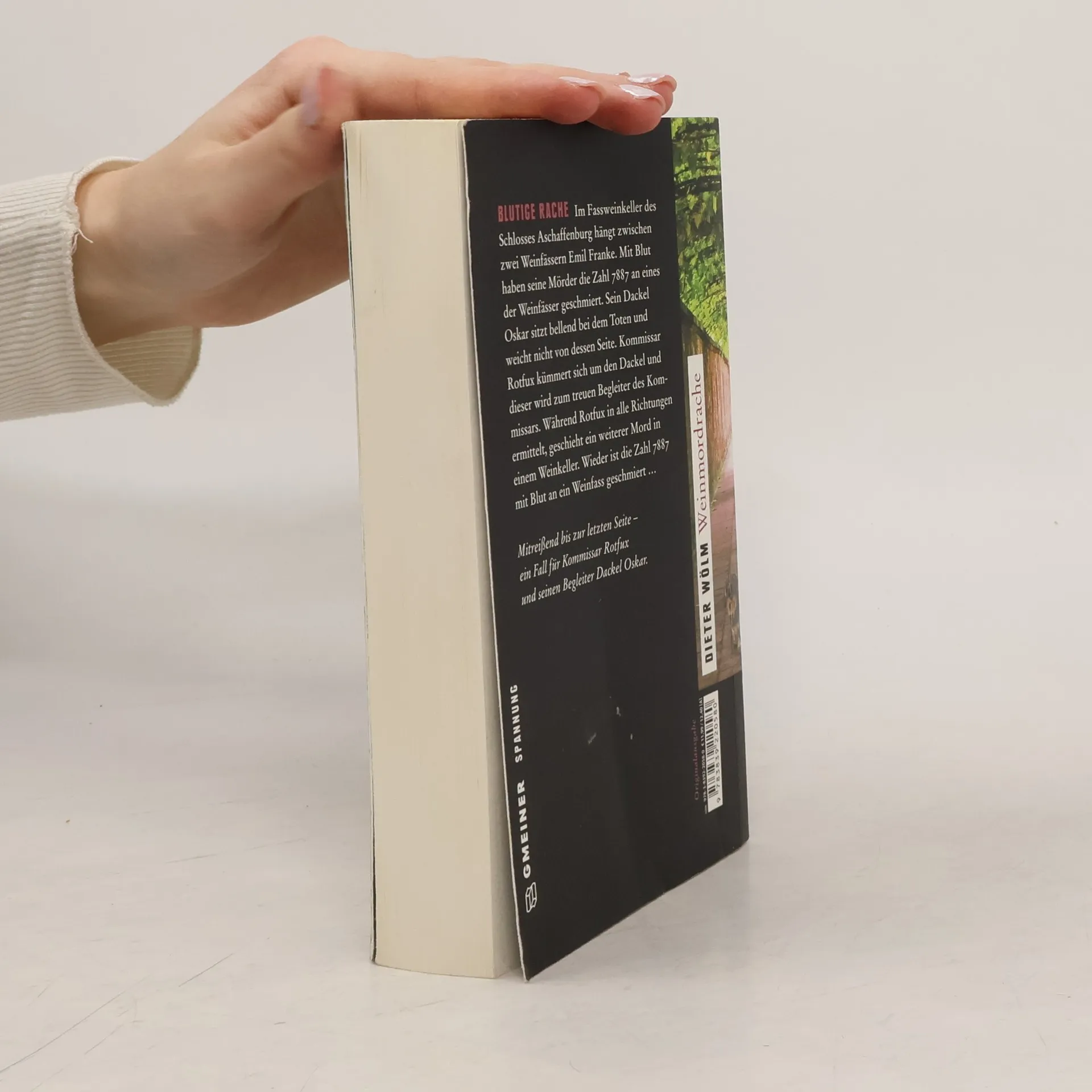 Im Fassweinkeller des Schlosses Aschaffenburg hängt zwischen zwei Weinfässern Emil Franke. Mit Blut haben seine Mörder die Zahl 7887 an eines der Weinfässer geschmiert. Sein Dackel Oskar sitzt bellend bei dem Toten und weicht nicht von dessen Seite. Kommissar Rotfux kümmert sich um den Dackel und dieser wird zum treuen Begleiter des Kommissars. Während Rotfux in alle Richtungen ermittelt, geschieht ein weiterer Mord in einem Weinkeller. Wieder ist die Zahl 7887 mit Blut an ein Weinfass geschmiert …