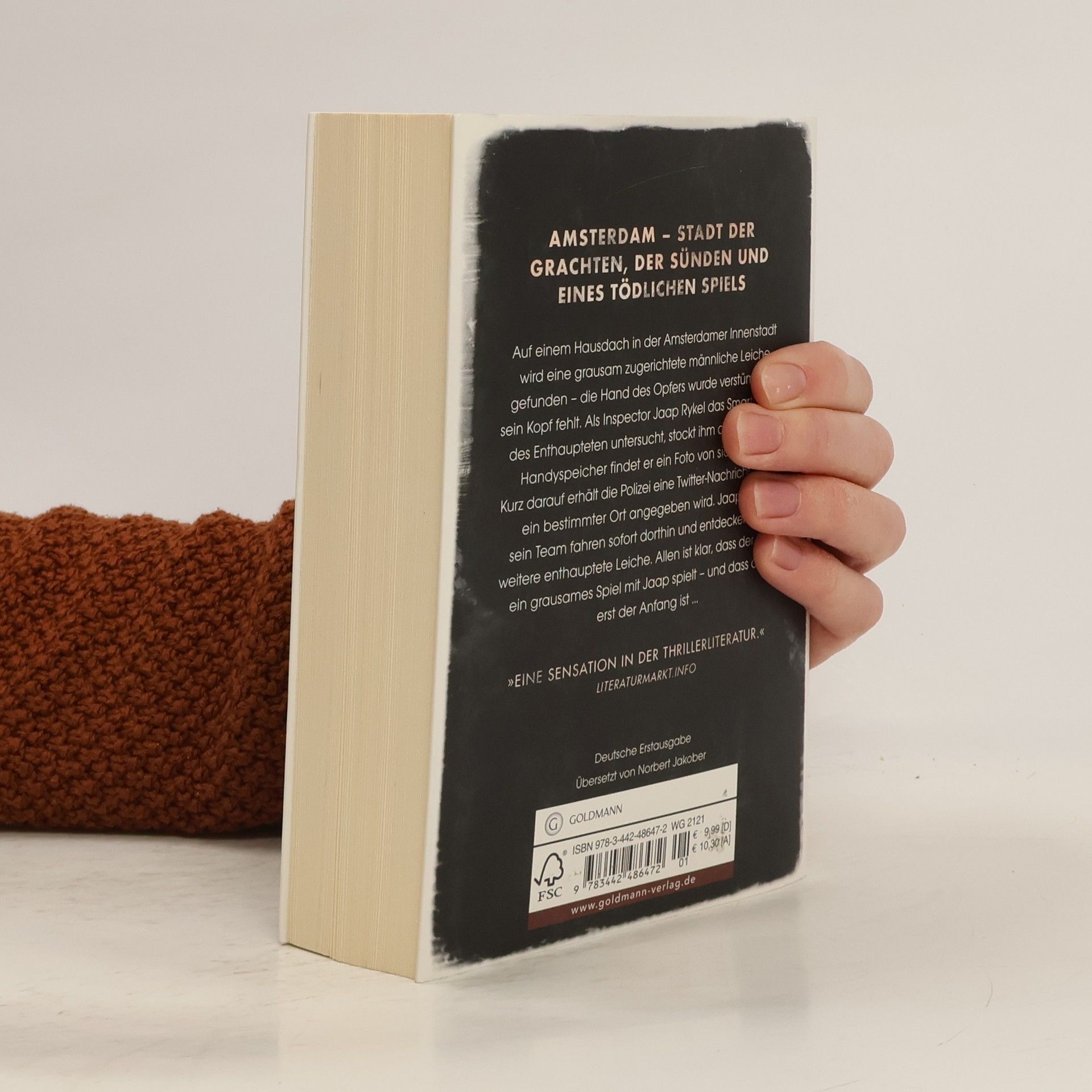 Auf einem Hausdach in der Amsterdamer Innenstadt wird eine männliche Leiche gefunden – die Hand des Opfers wurde mit einem Schneidbrenner bearbeitet, sein Kopf fehlt. Als Inspector Jaap Rykel das Smartphone des Enthaupteten untersucht, stockt ihm der Atem: Im Handyspeicher findet er ein Foto von sich selbst. Kurz darauf erhält die Polizei eine Twitter-Nachricht, in der ein bestimmter Ort angegeben wird. Rykel und sein Team fahren sofort dorthin – und entdecken eine weitere kopflose Leiche. Allen wird klar, dass der Täter ein grausames Spiel mit Rykel spielt ...