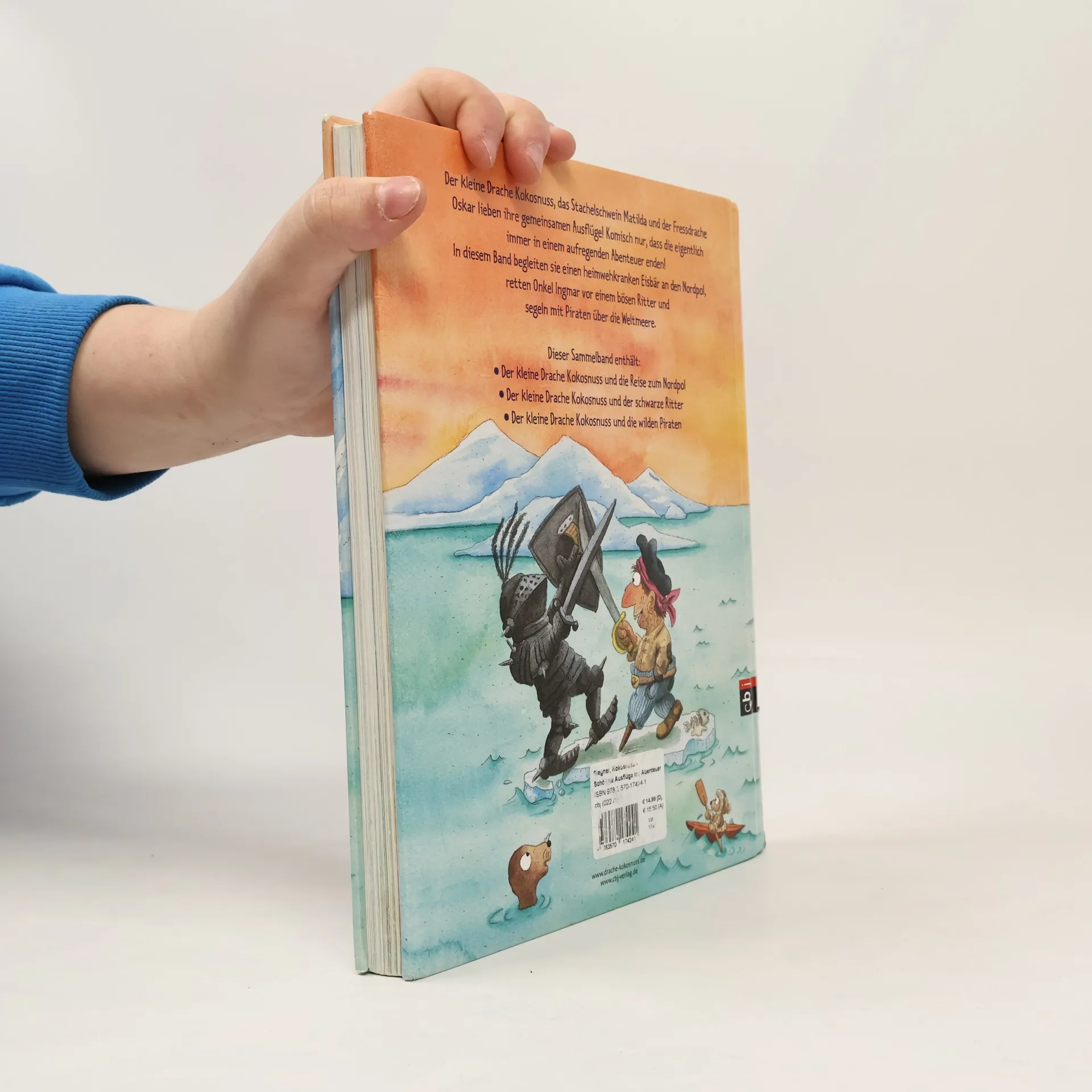 Für kleine Abenteurer und riesige Kokosnuss-Fans! In diesem großformatigen Band erleben der kleine Drache Kokosnuss, das Stachelschwein Matilda und der Fressdrache Oskar drei aufregende Abenteuer: Sie begegnen einem bösen Ritter und wilden Piraten und machen sich auf eine gefährliche Reise Richtung Norden. Enthalten sind die Bände: „Kokosnuss und die Reise zum Nordpol, “Kokosnuss und die wilden Piraten„ und “Kokosnuss und der schwarze Ritter" Ausstattung: Mit fbg. Illustrationen