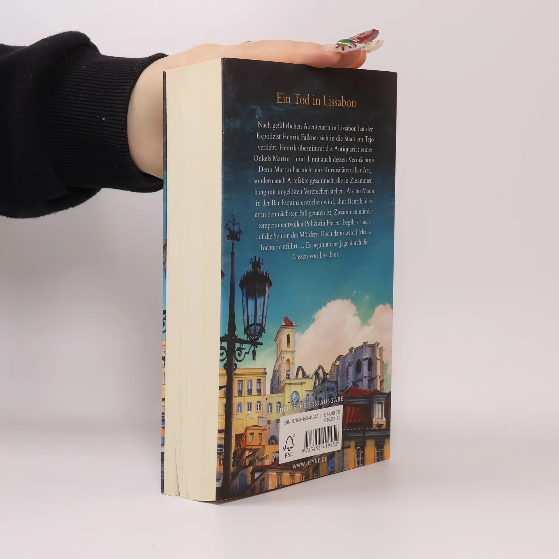 Nach gefährlichen Abenteuern in Lissabon hat der Expolizist Henrik Falkner sich in die Stadt am Tejo verliebt. Henrik übernimmt das Antiquariat seines Onkels Martin – und damit auch dessen Vermächtnis. Denn Martin hat nicht nur Kuriositäten aller Art, sondern auch Artefakte gesammelt, die in Zusammenhang mit ungelösten Verbrechen stehen. Als ein Mann in der Bar Esquina erstochen wird, ahnt Henrik, dass er in den nächsten Fall geraten ist. Zusammen mit der temperamentvollen Polizistin Helena begibt er sich auf die Spuren des Mörders. Doch dann wird Helenas Tochter entführt … Es beginnt eine Jagd durch die Gassen von Lissabon.