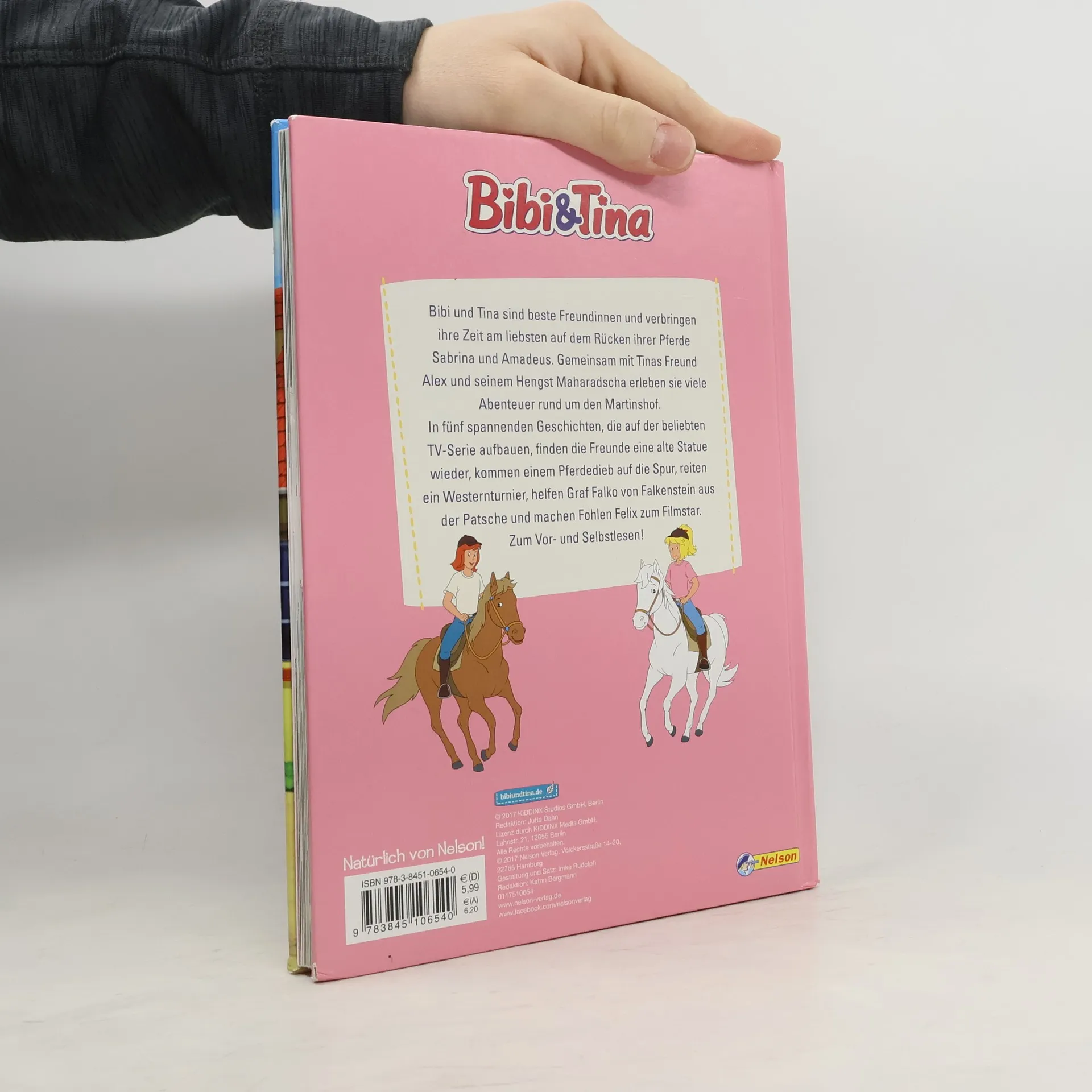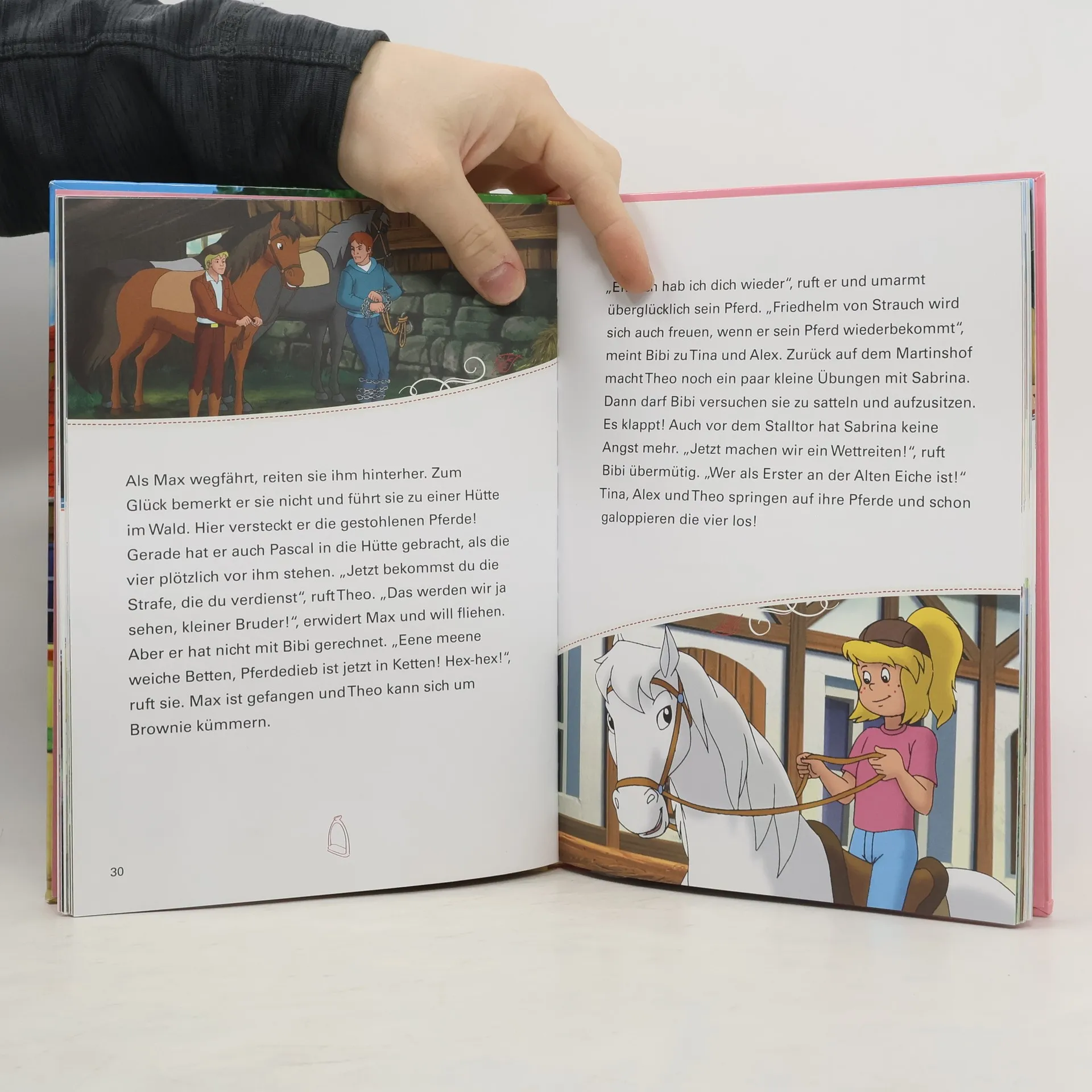 Bibi und Tina sind beste Freundinnen und verbringen ihre Zeit am liebsten auf dem Rücken ihrer Pferde Amadeus und Sabrina. Gemeinsam mit Tinas Freund Alex und seinem Hengst Maharadscha erleben sie viele spannende Abenteuer rund um den Martinshof. In diesem Buch gehst du mit den Freunden auf Zeitreise, besuchst ein Filmset, hilfst Graf von Falkenstein aus der Patsche, klärst einen Pferdediebstahl auf und lernst Westernreiten. Viel Spaß!
